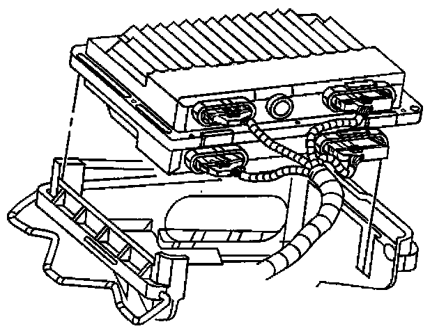 6. Insert the VCM into the VCM bracket. Ensure that the VCM is fully seated, so that the snap retainer is up into its normal position and is retaining the module.