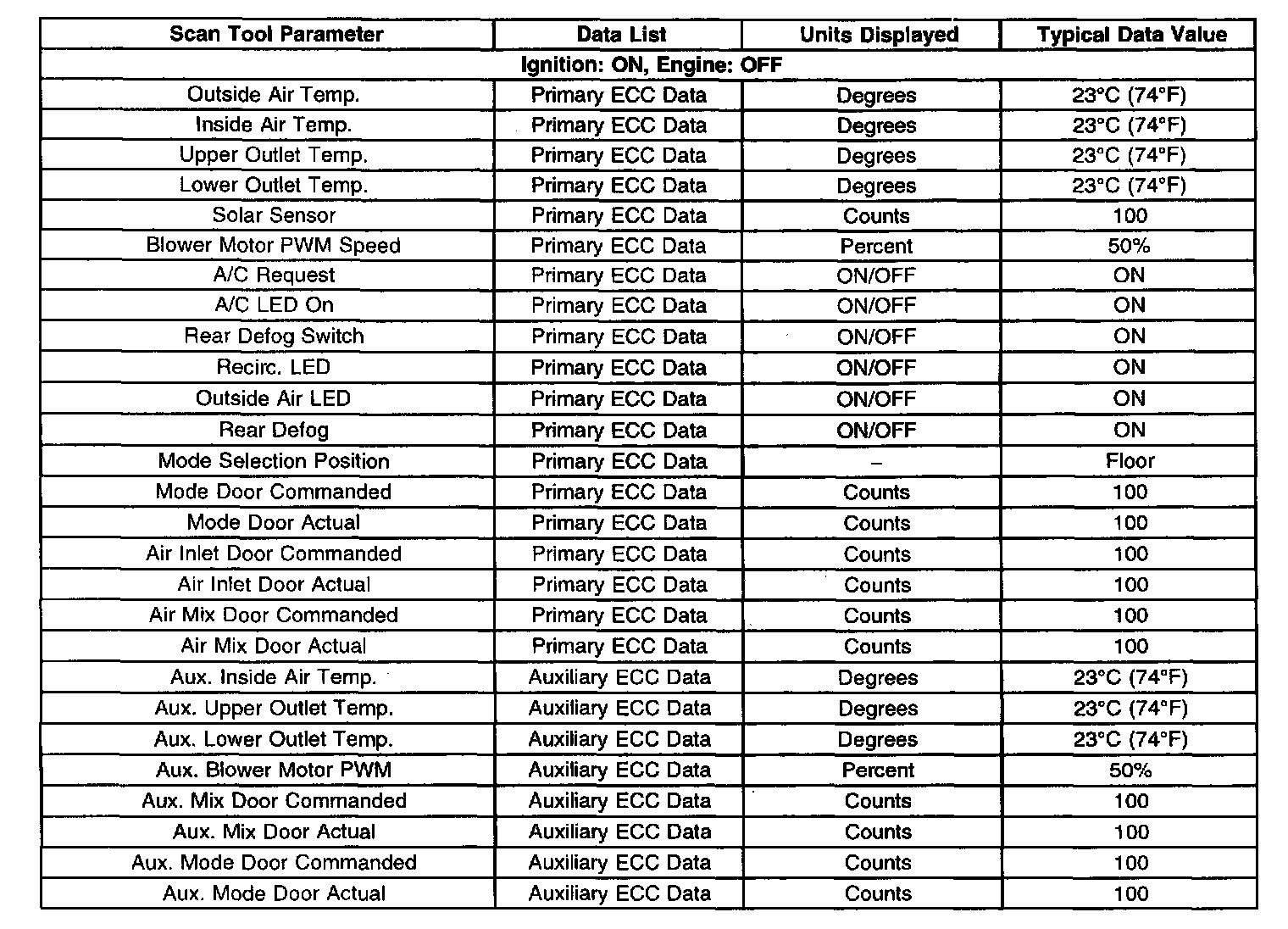 Scan Tool Data List: