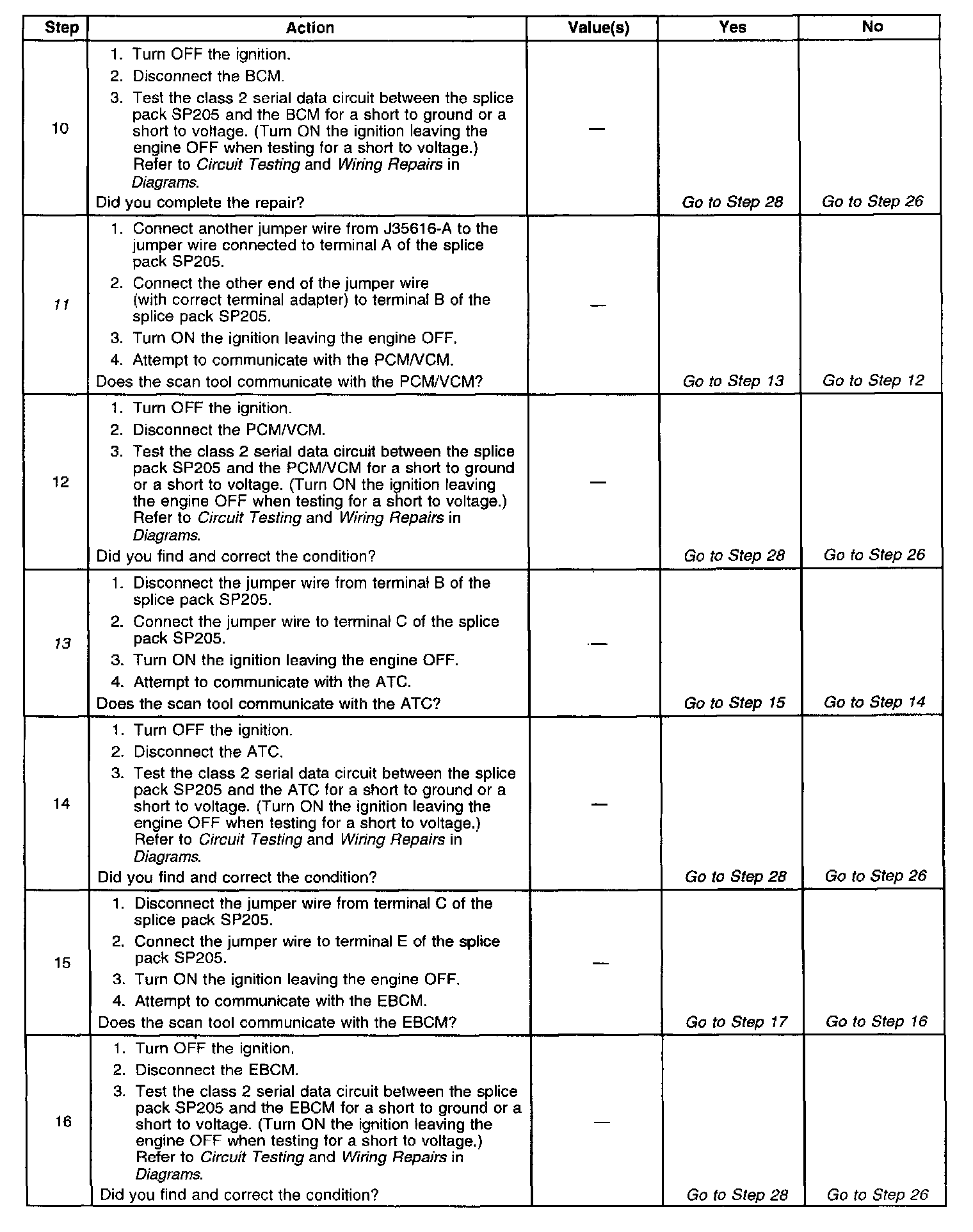 15. This test isolates the EBCM class 2 serial data circuit.