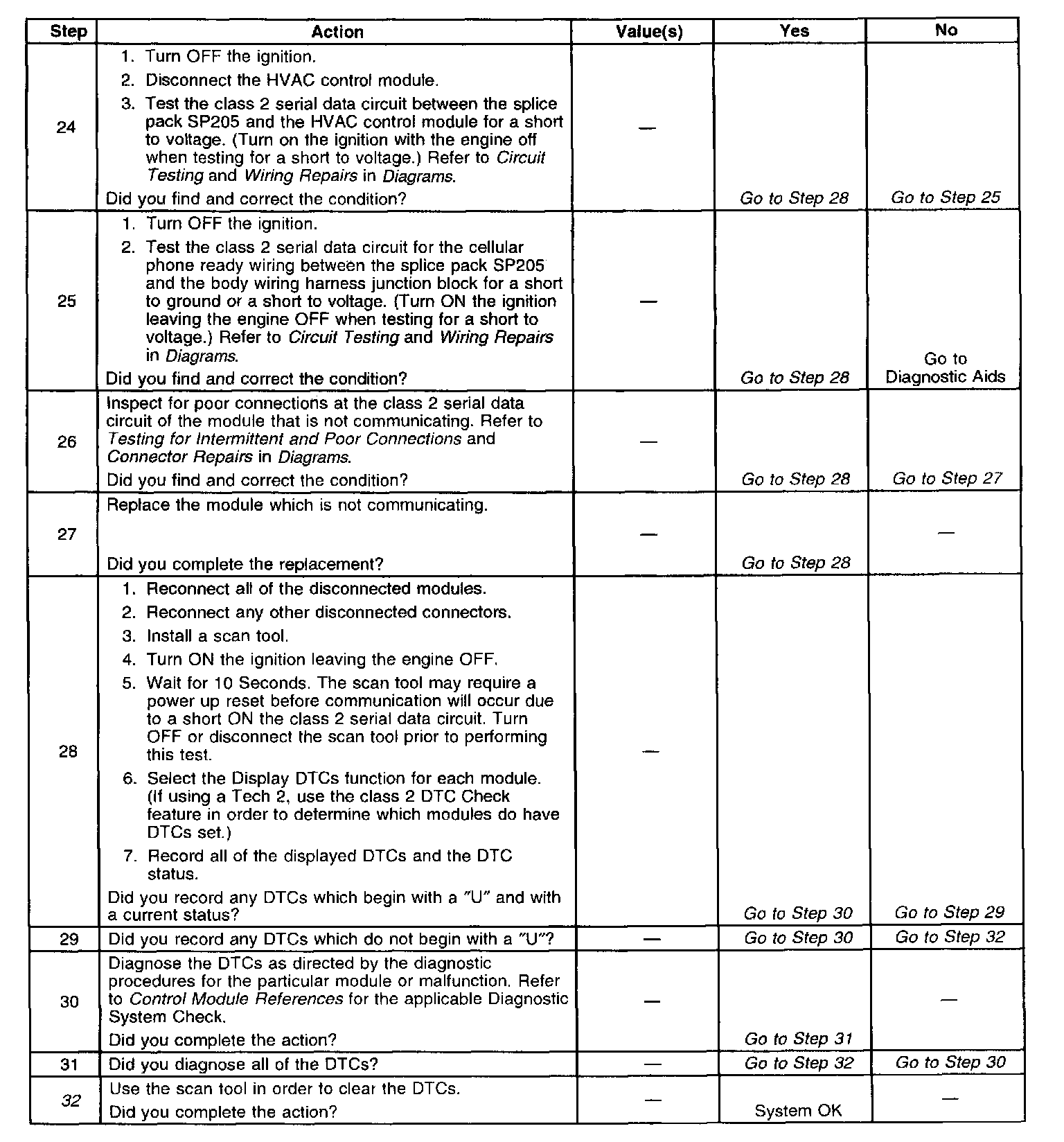 ^ When the class 2 serial data circuit is shorted to ground, U1300 will be set. Refer to DTC U1300 Class 2 Data Link Low.