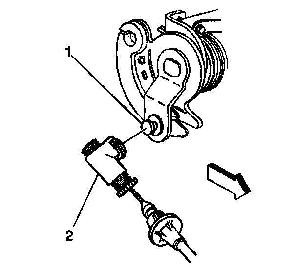 5. Remove the cruise control cable end (2) from the throttle linkage (1).