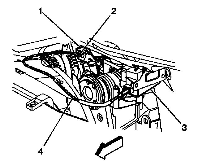 1. Route the cruise control cable (4) from the cruise control module (3) to the throttle body.