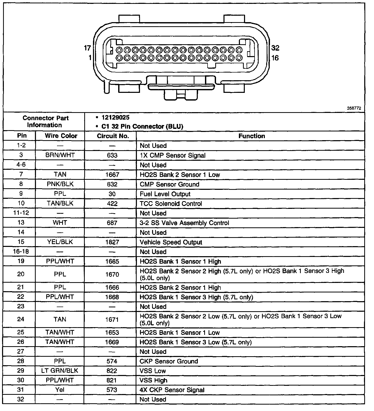 Blue C1 32 Pin Connector End View: