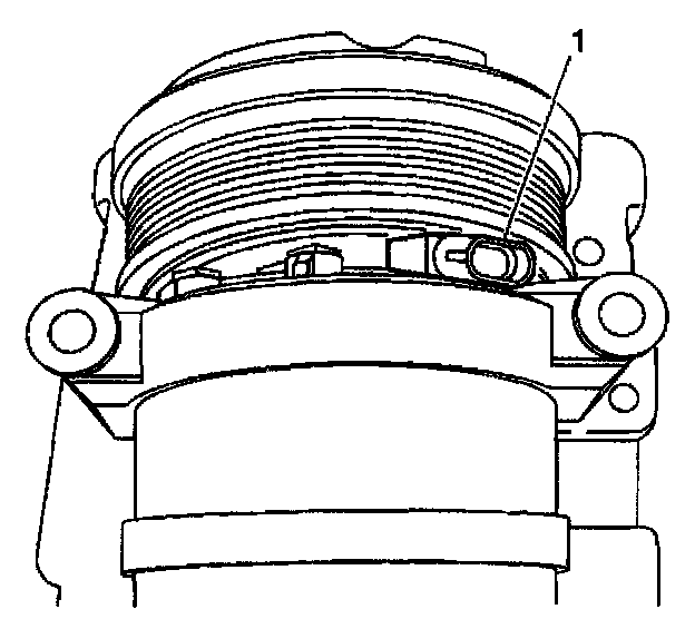 6. Connect the clutch coil electrical connector (1) to the compressor.