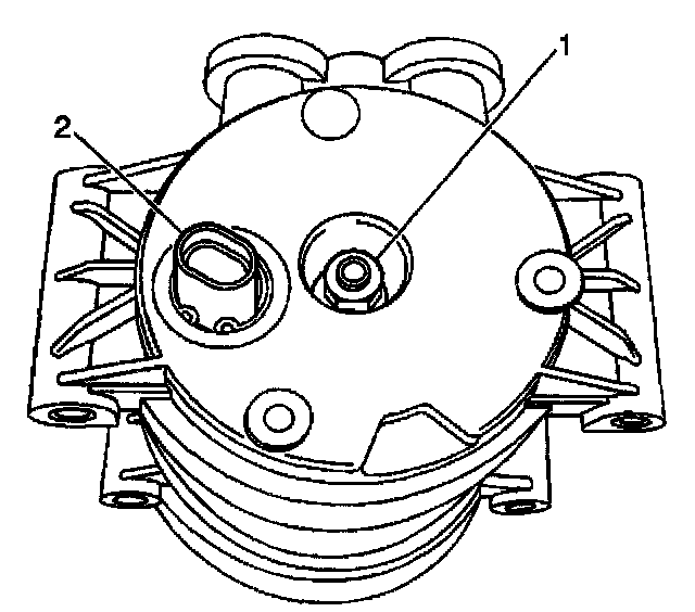 5. Disconnect the high pressure switch electrical connector (2) from the compressor.