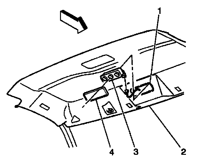 2. Remove the front control switch (3) by unsnapping the retainers from the headliner
