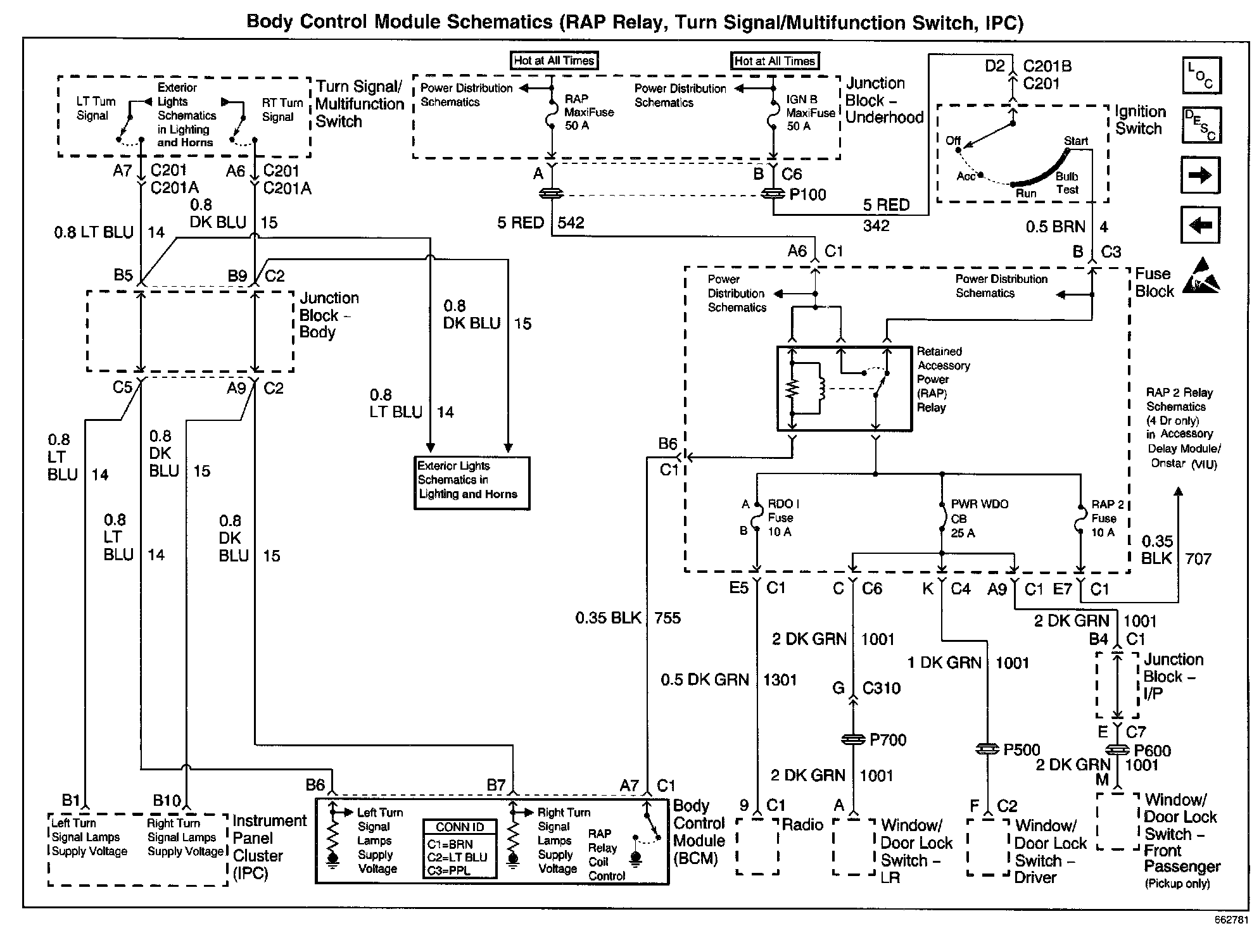 Body Control Module Schematics: RAP Relay, Turn Signal/Multifunction Switch, IPC:
