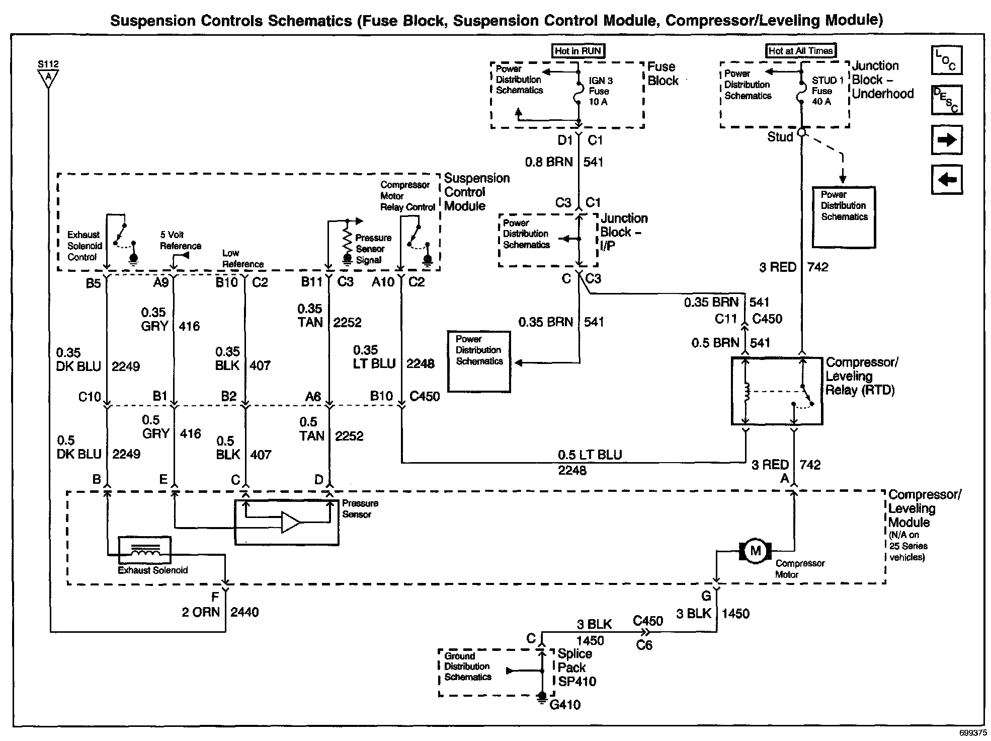 Suspension Controls Schematics: Fuse Block, Suspension Control Module, Compressor/Leveling Module: