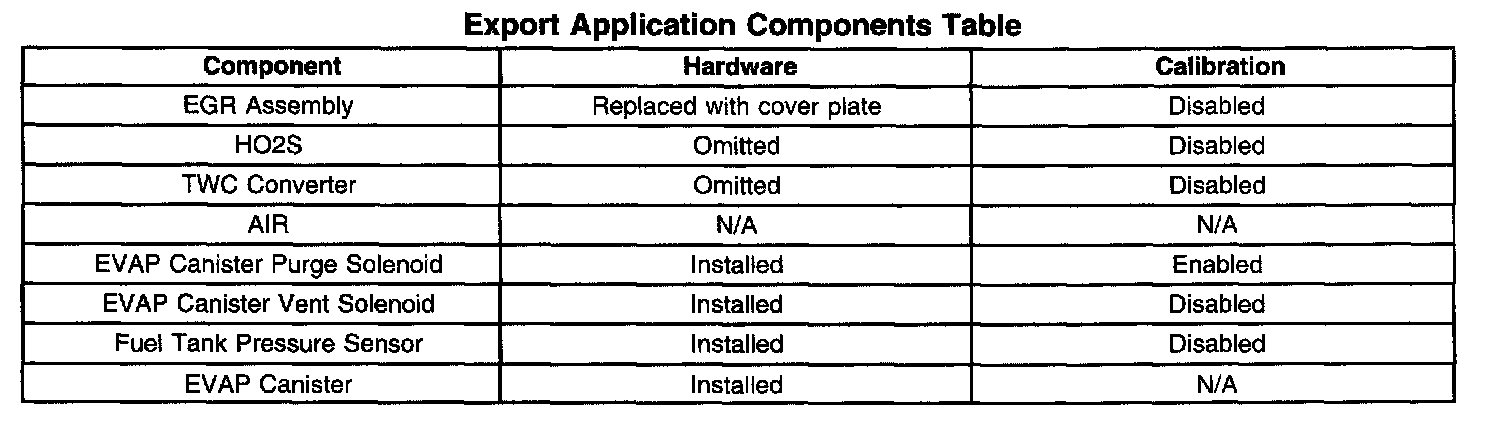 Export Application Components Table: