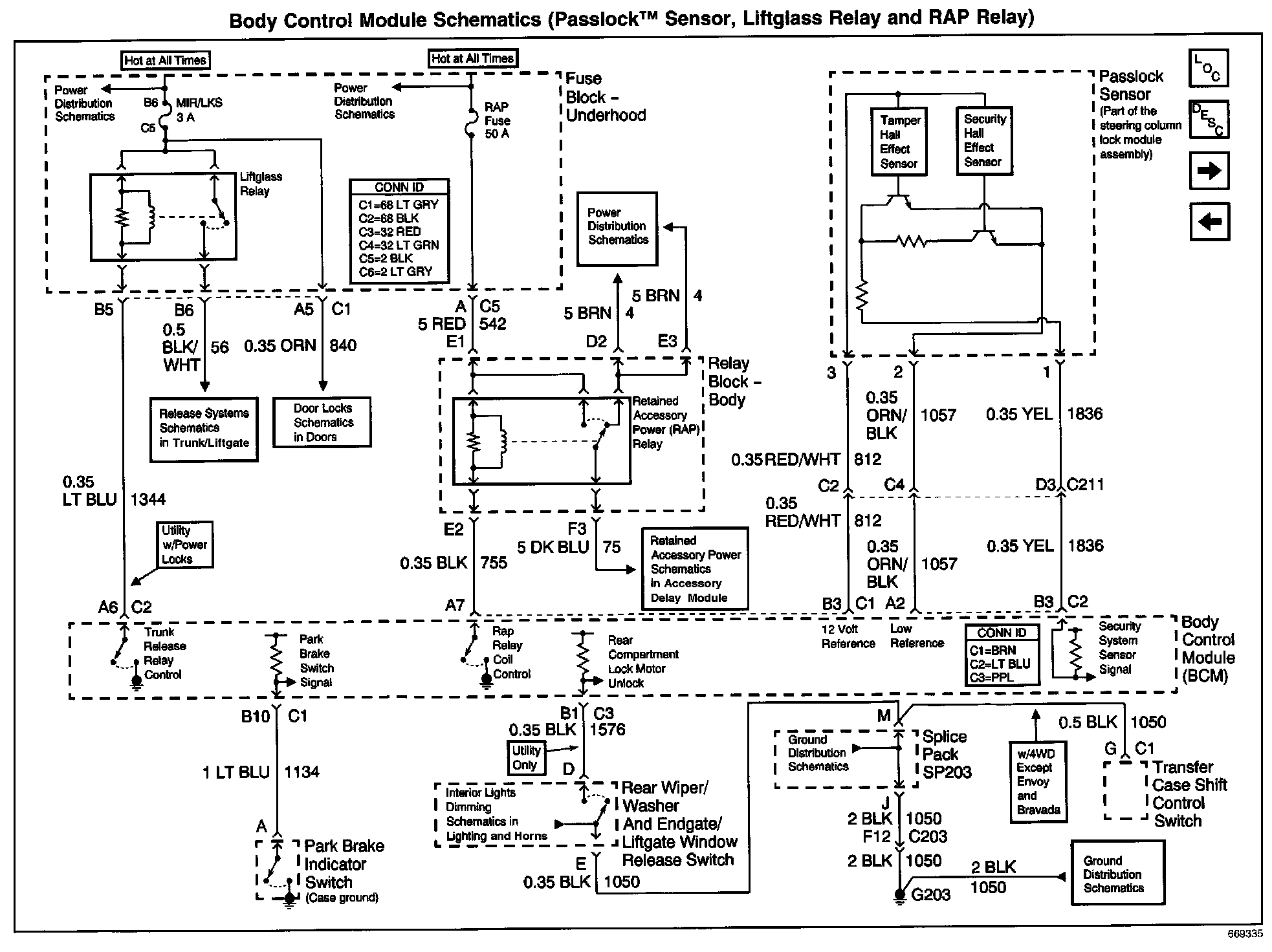 Body Control Module Schematics: Passlock(TM) Sensor, Liftglass Relay And RAP Relay:
