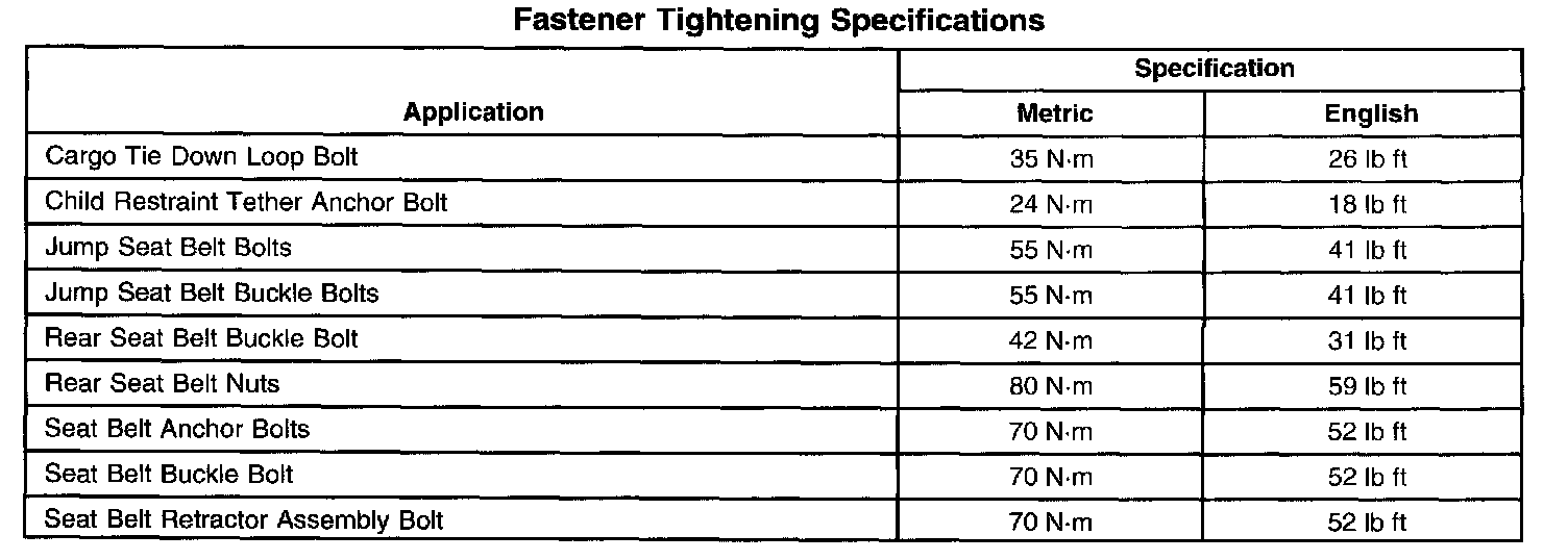 Fastener Tightening Specifications: