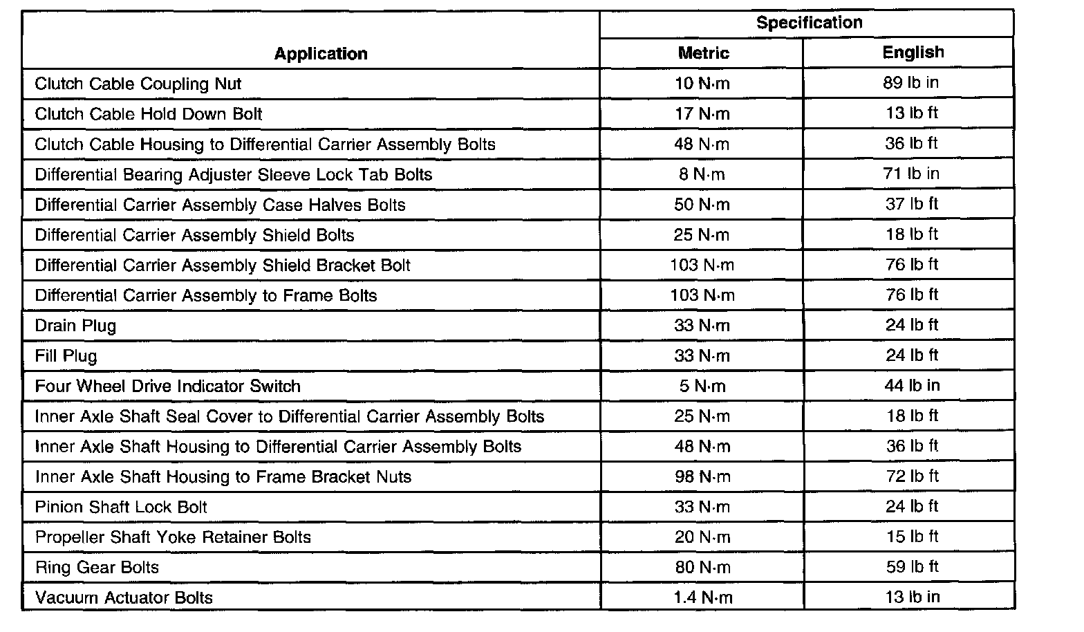Fastener Tightening Specifications