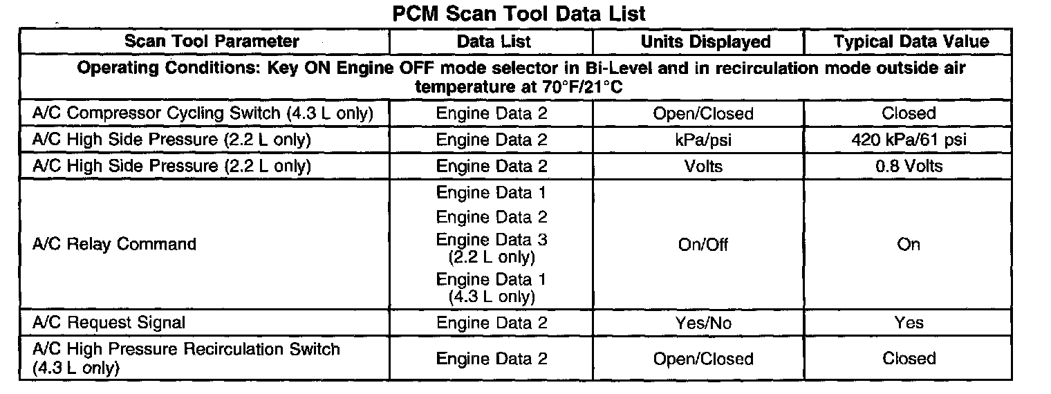 Scan Tool Data List - Powertrain Control Module (PCM)