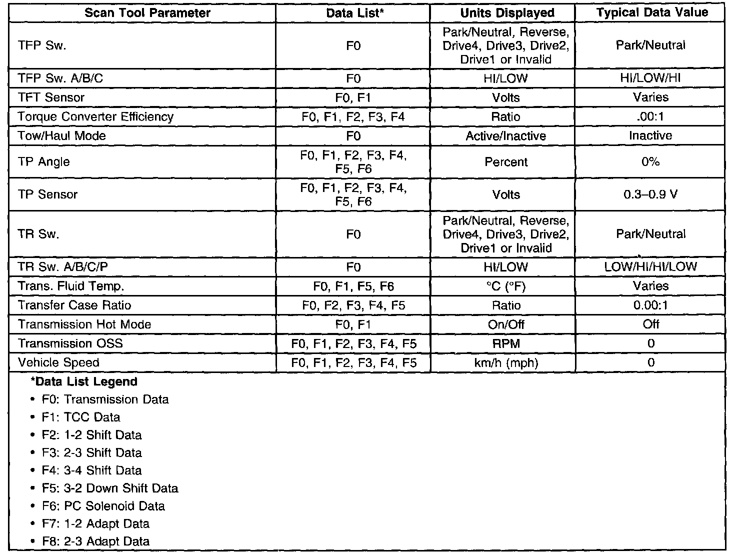 Transmission Scan Tool Data ListUse the scan tool data list under the following conditions: