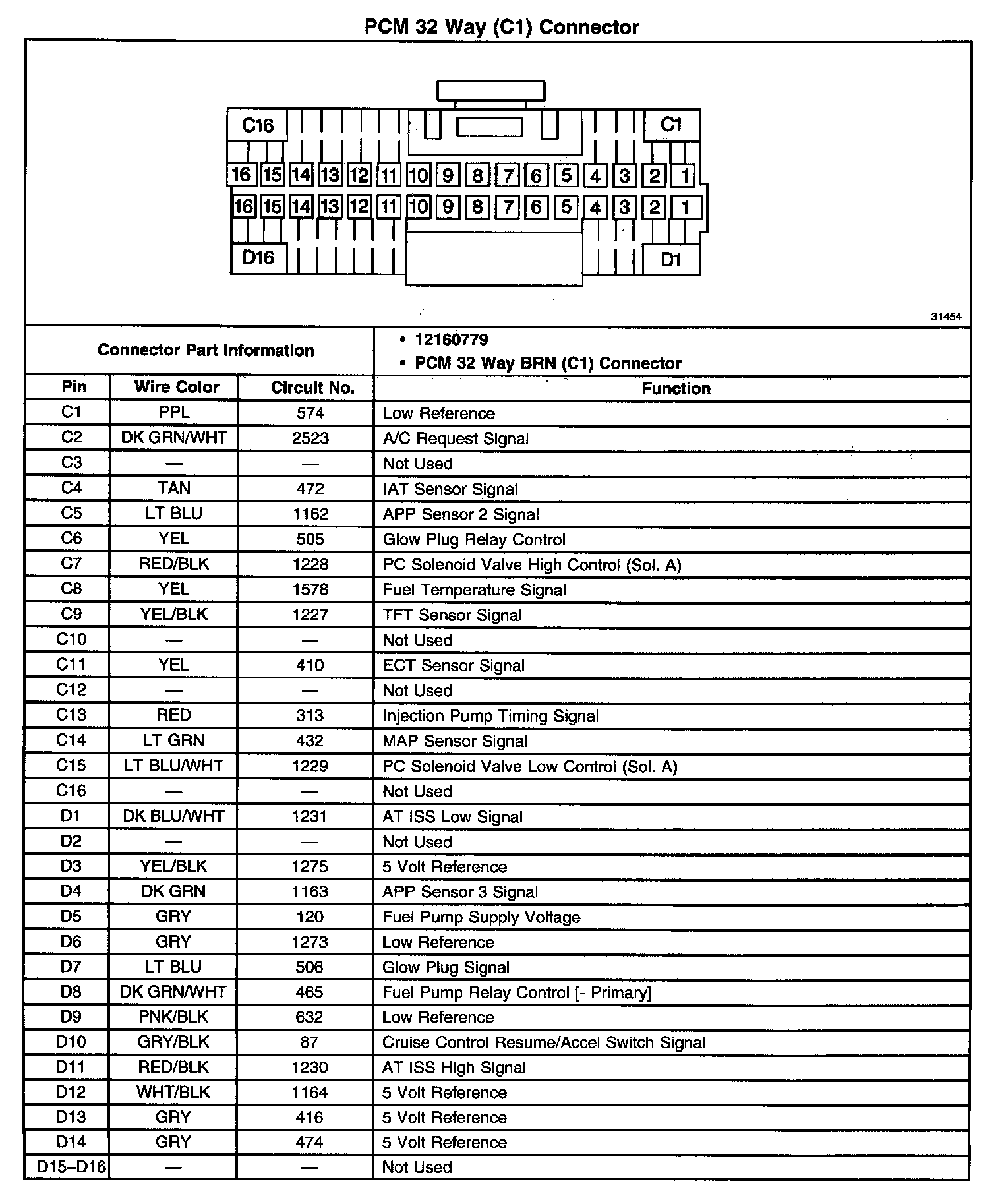 PCM 32 Way (C1) Connector: