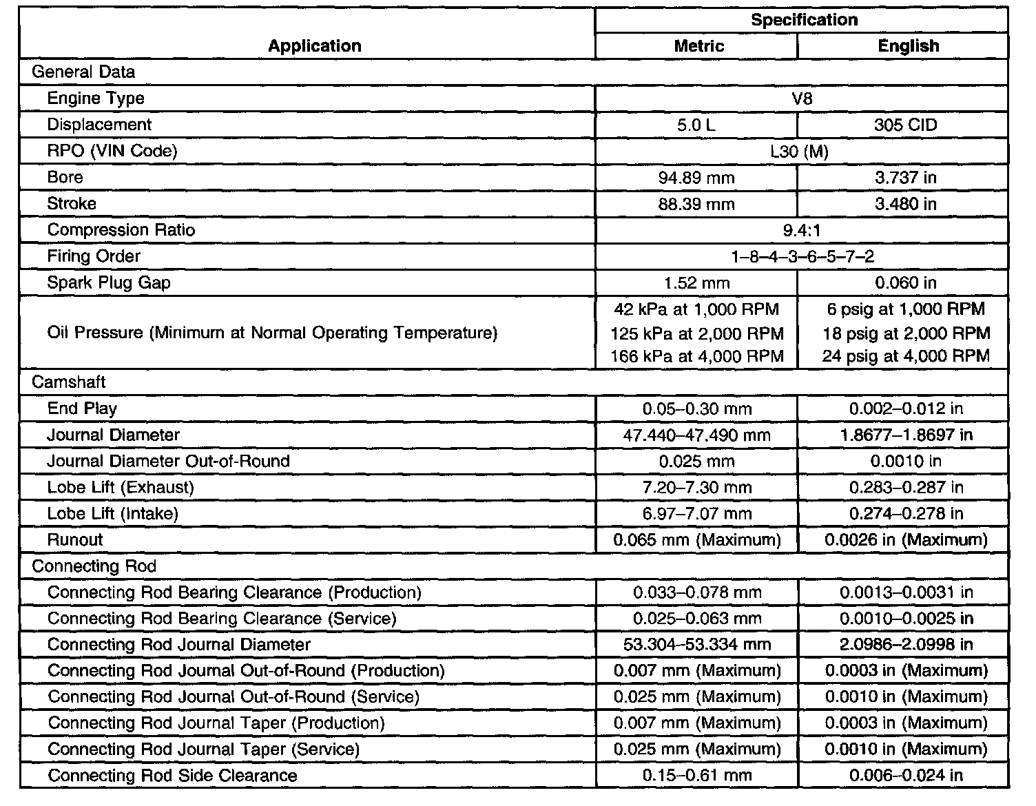 Engine Mechanical Specifications-Unit Repair