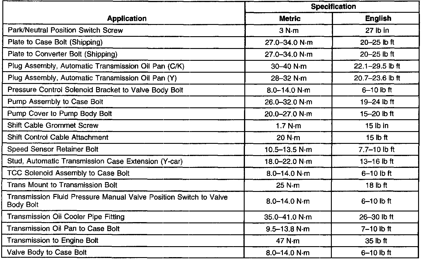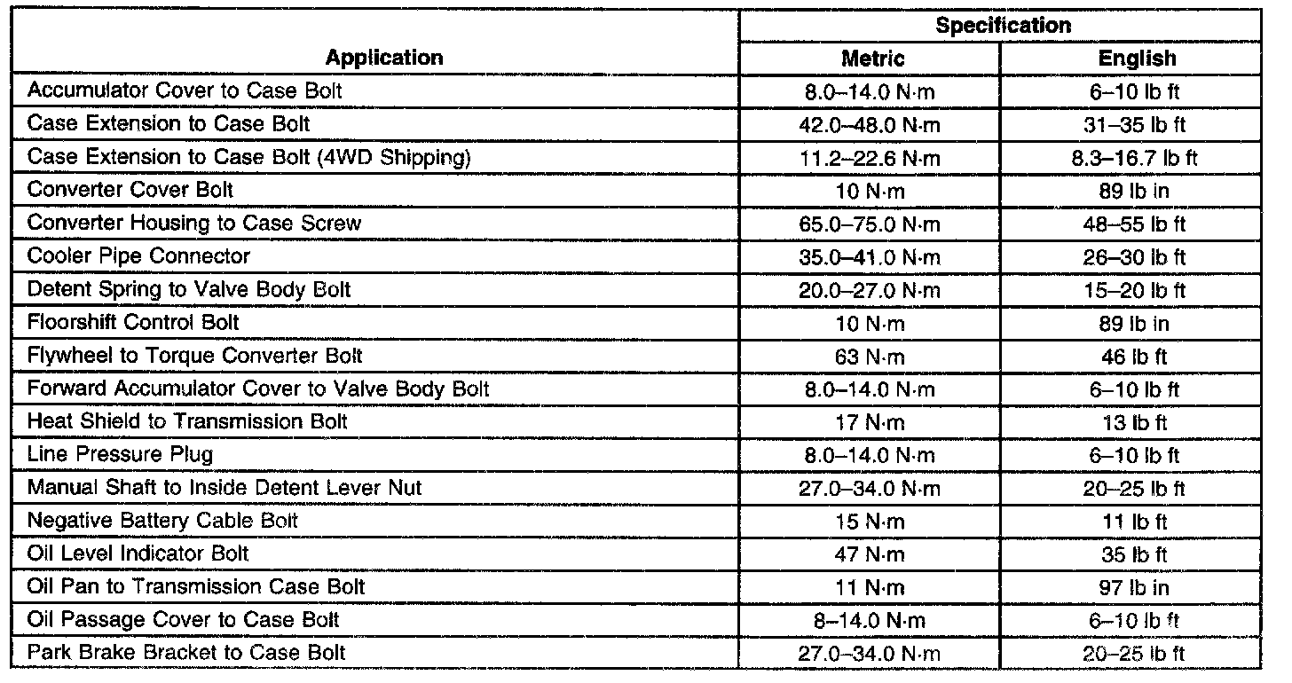 Transmission General Specifications