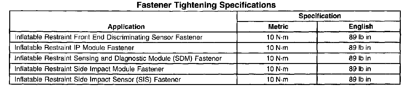 Fastener Tightening Specifications:
