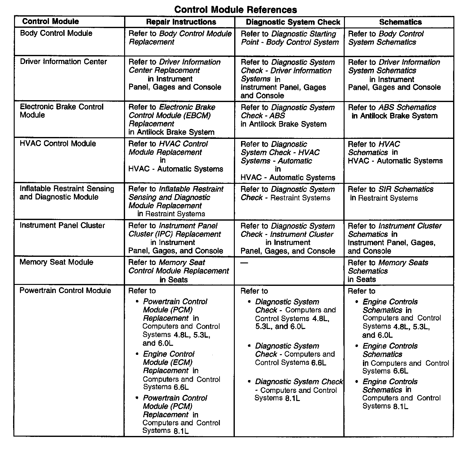 Control Module References