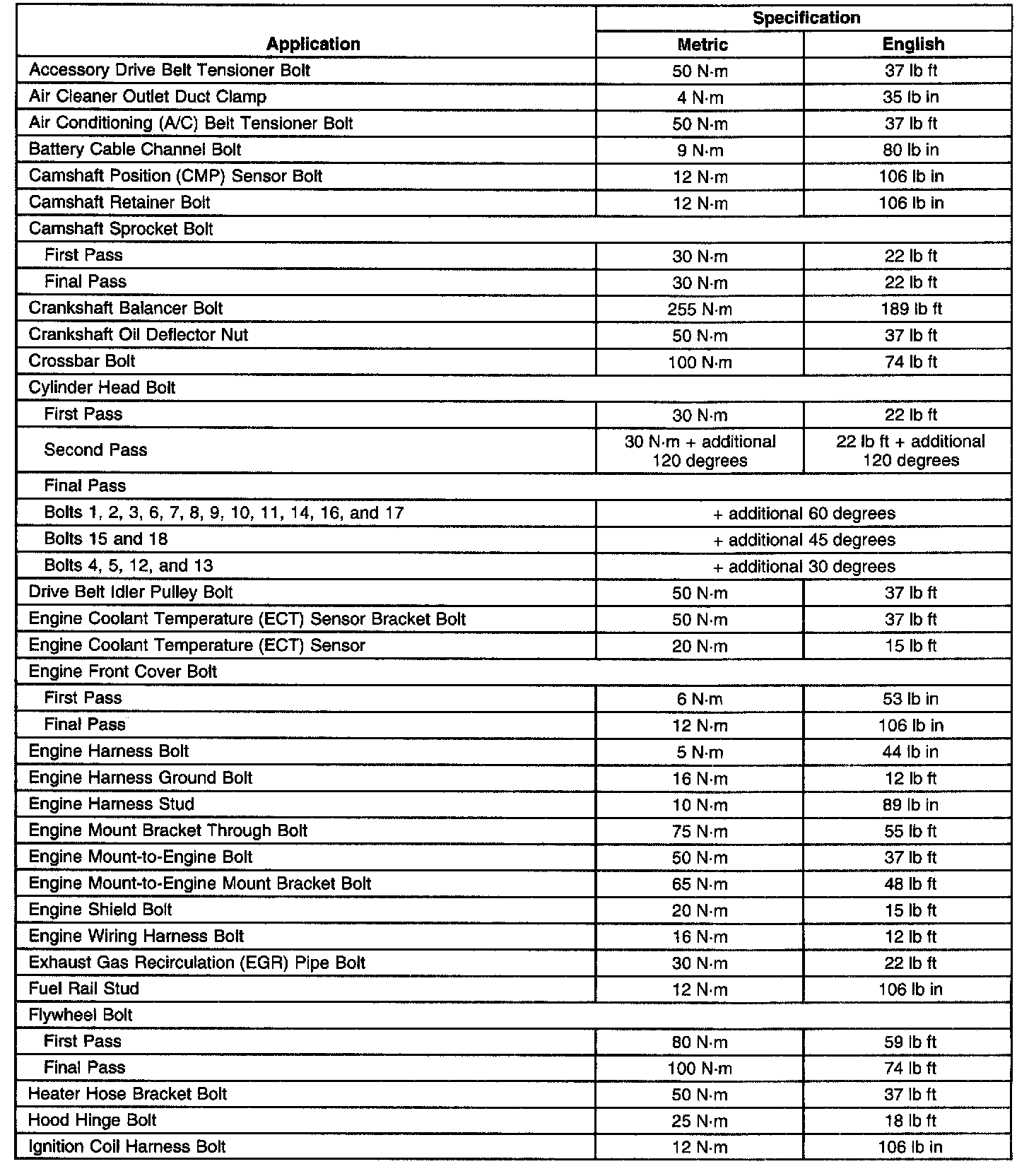 Fastener Tightening SpecificationsGeneral