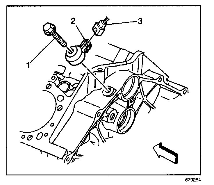 1. Install the knock sensor (2) and bolt (1).