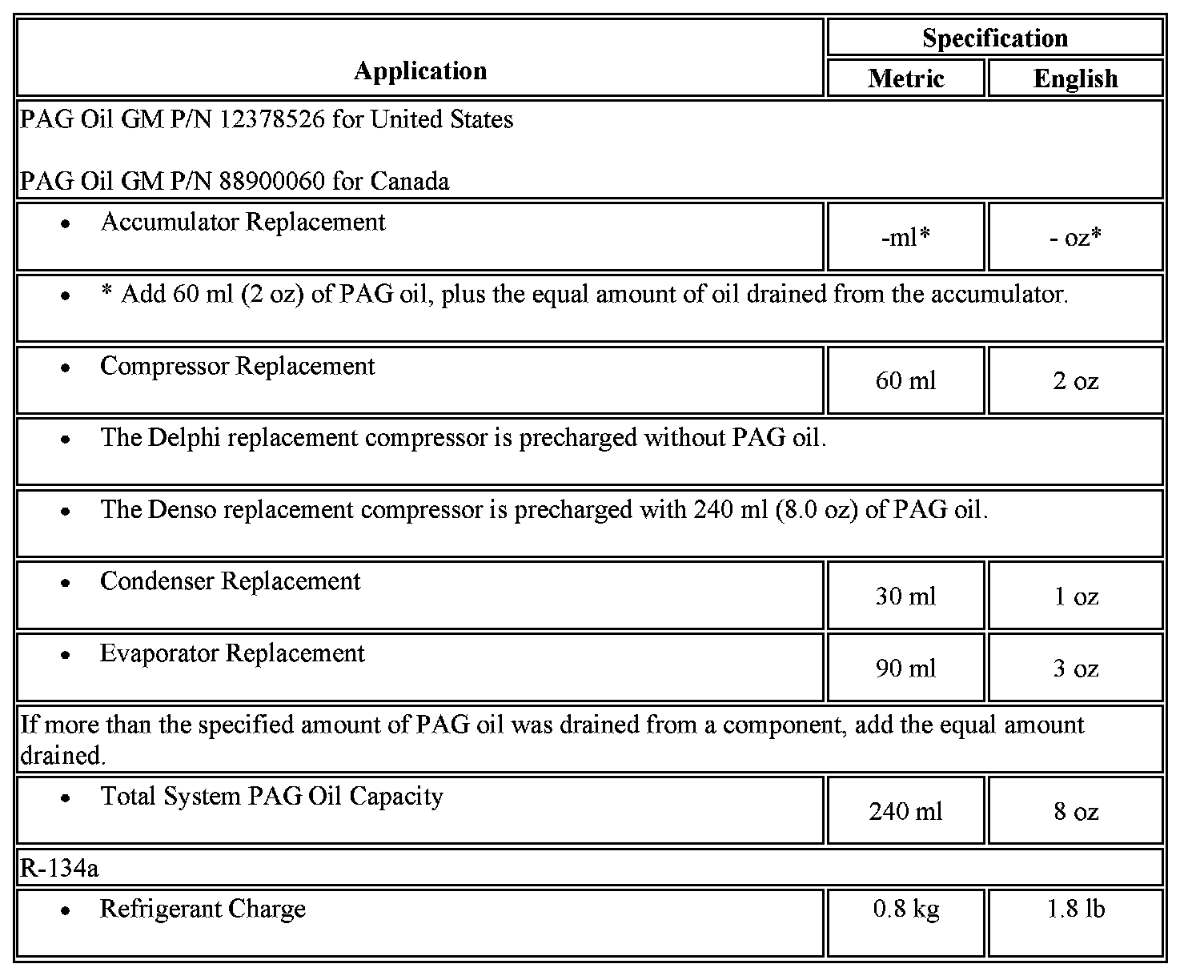 Capacity Specifications