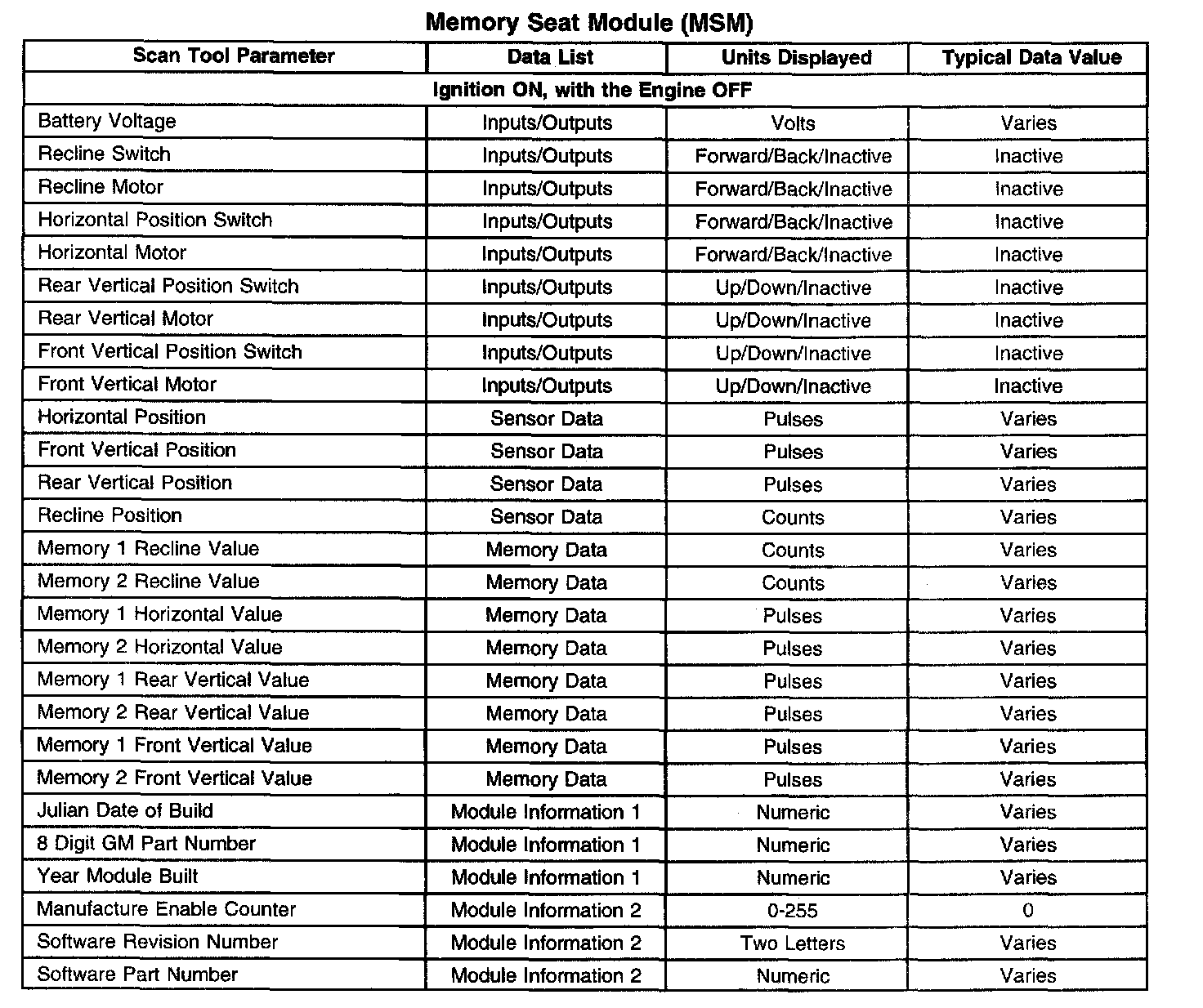 Memory Seat Module (MSM):
