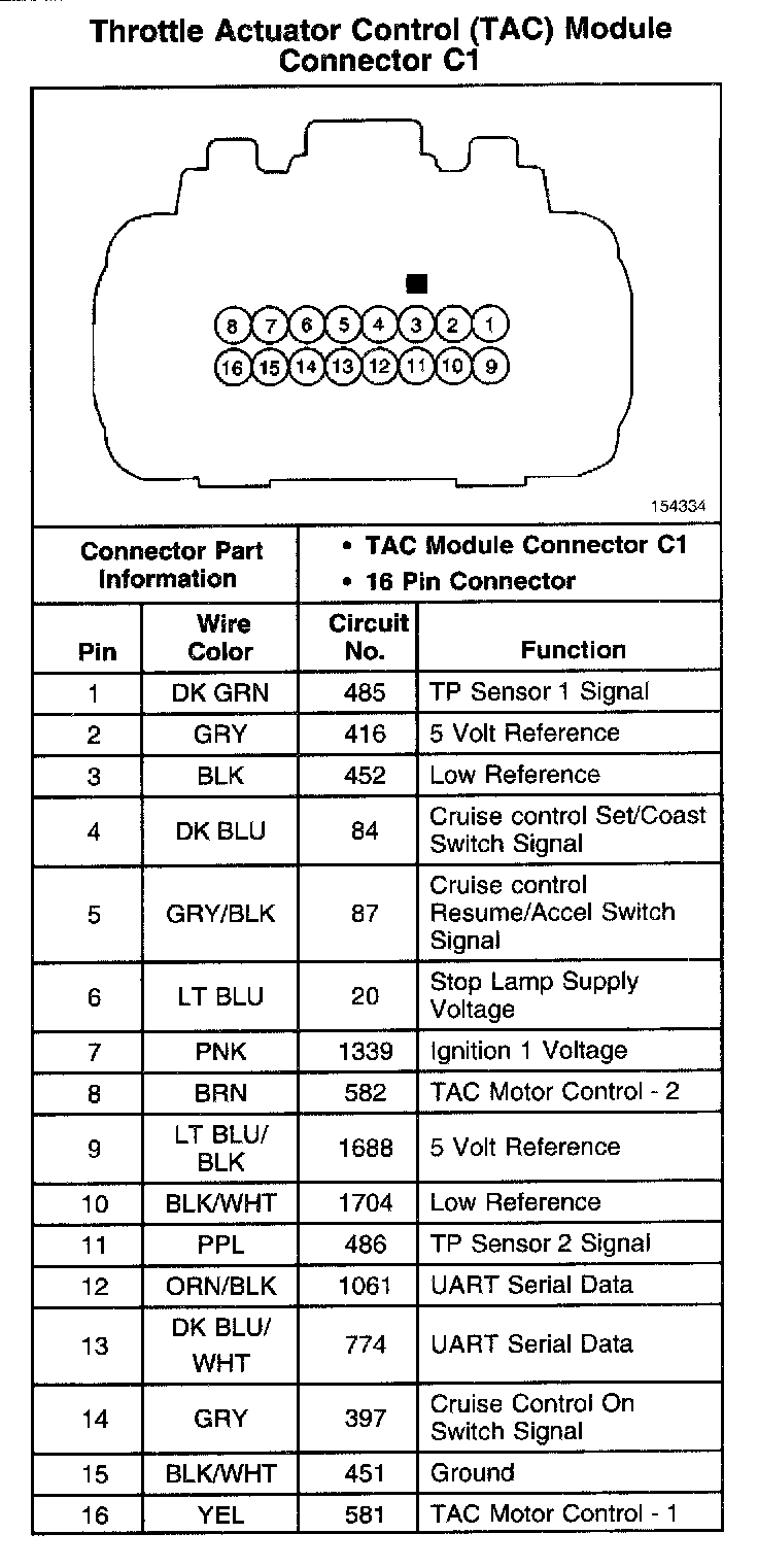 Throttle Actuator Control (TAC) Module Connector C1: