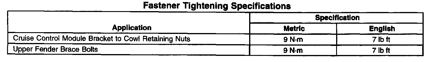 Fastener Tightening Specifications: