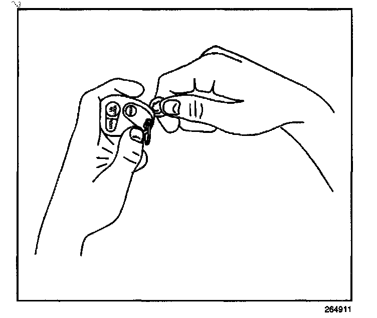 1.1. Insert a dime between the 2 halves of the transmitter near the key ring hole.
