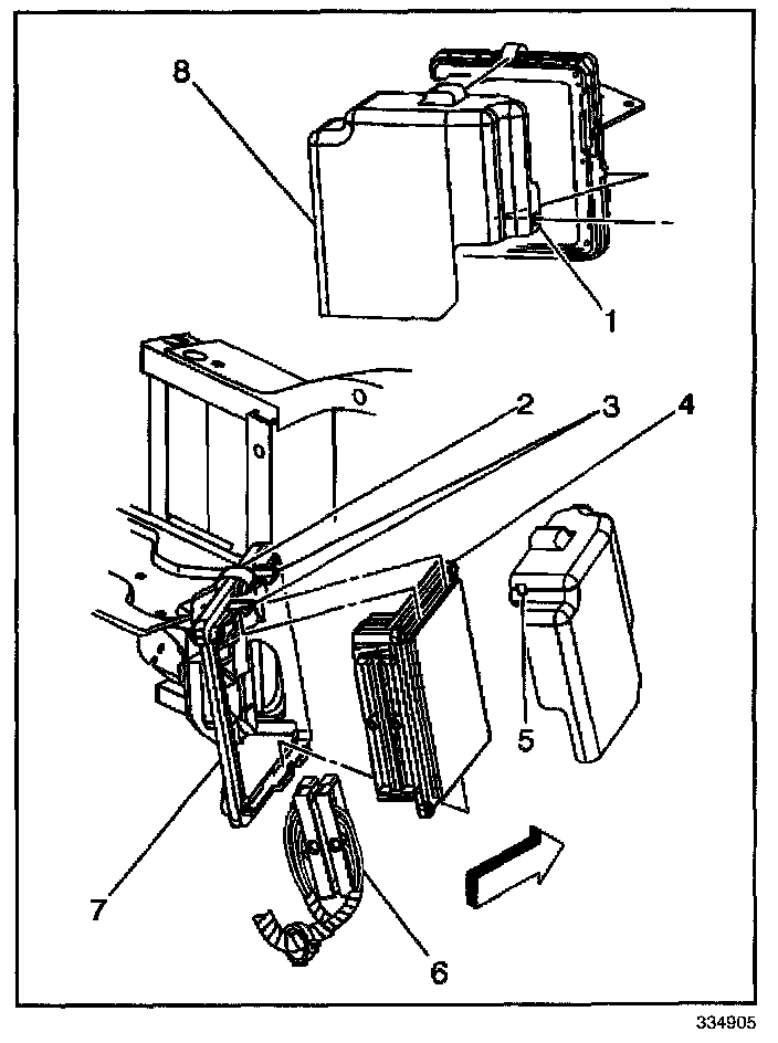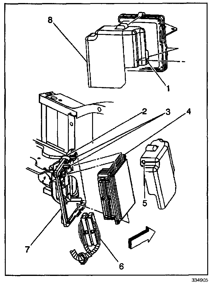 4. Install the ECM cover (8) to the ECM mounting bracket (7), ensuring the mounting tabs on the ECM mounting bracket are engaged into the mounting holes in the ECM cover.