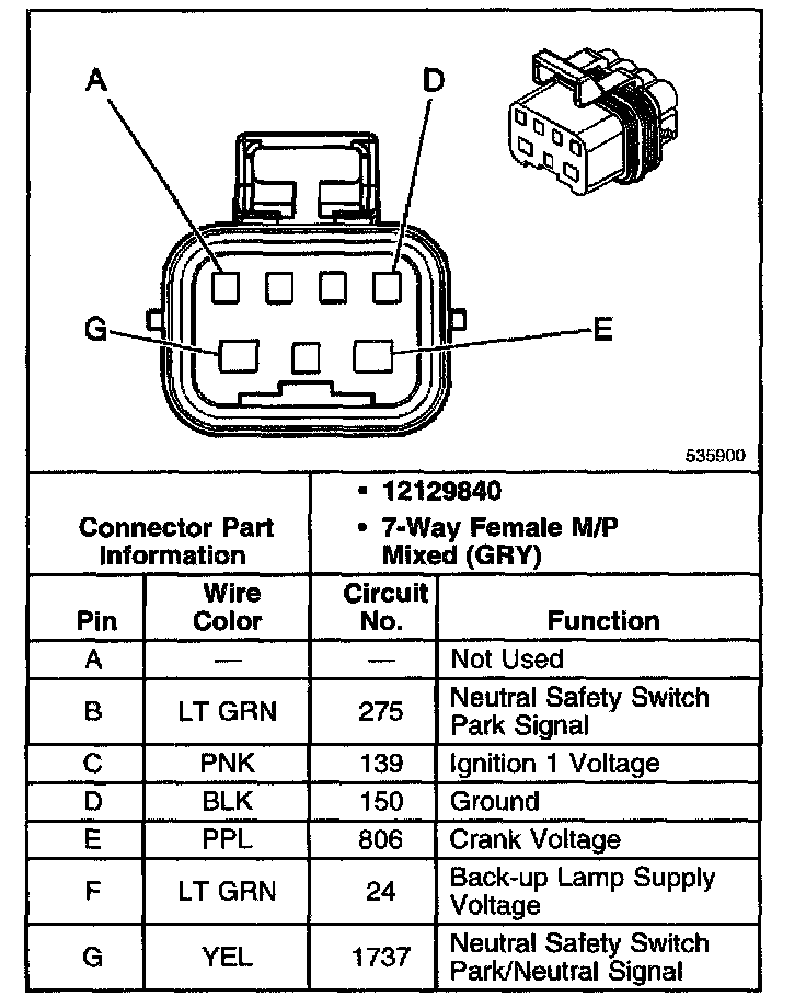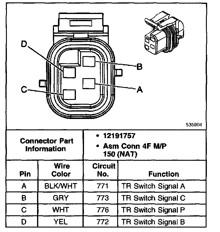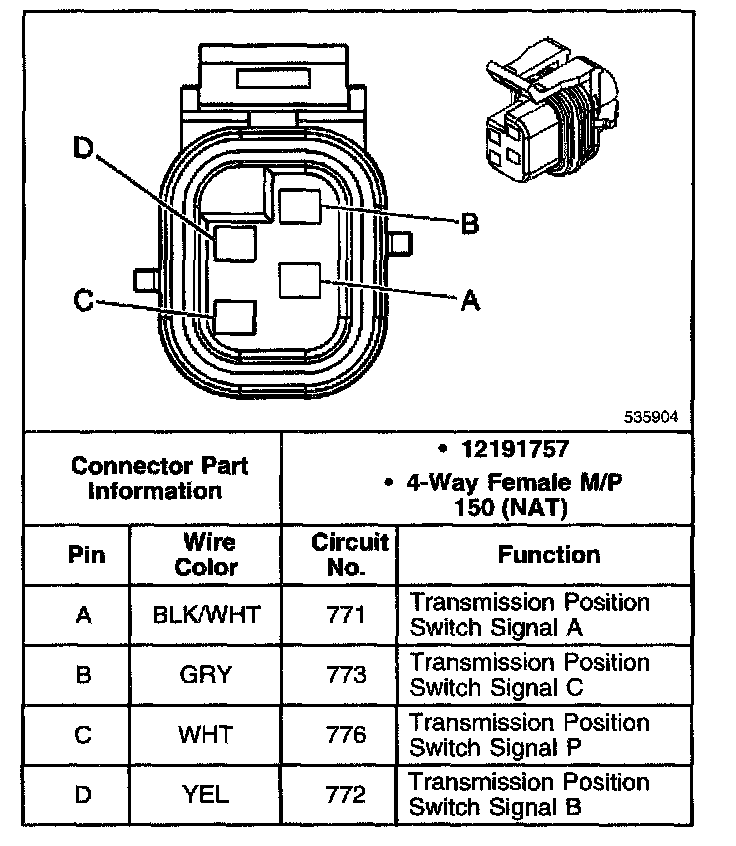 Automatic Transmission Related Connector End ViewsTransmission Range Switch Connector, Wiring Harness Side