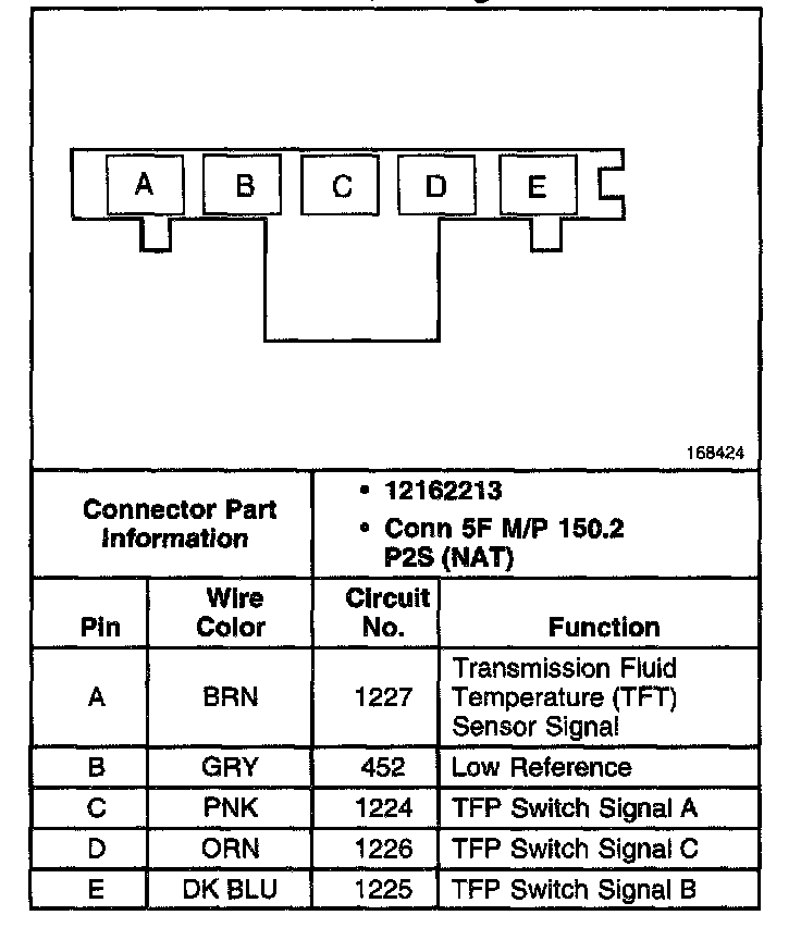 TFP Manual Valve Position Switch Connector, Wiring Harness Side: