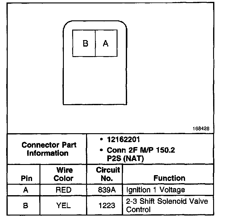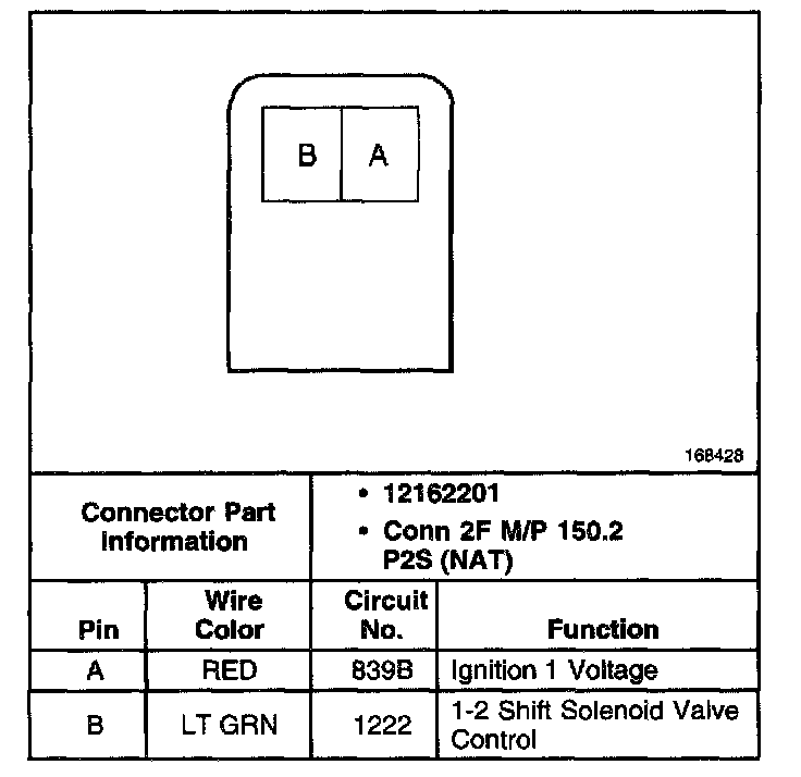 1-2 Shift Solenoid Valve Connector, Wiring Harness Side: