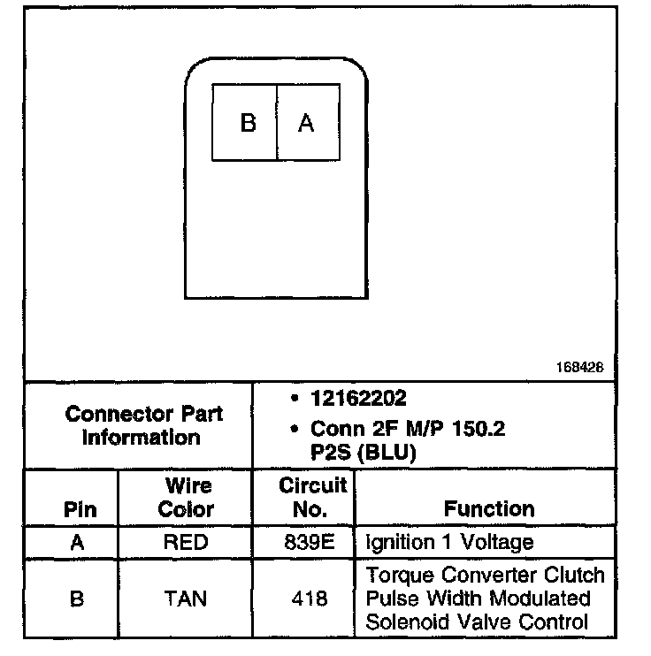TCC PWM Solenoid Valve Connector, Wiring Harness Side: