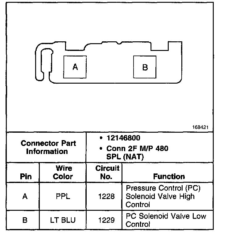 Pressure Control Solenoid Valve Connector, Wiring Harness Side: