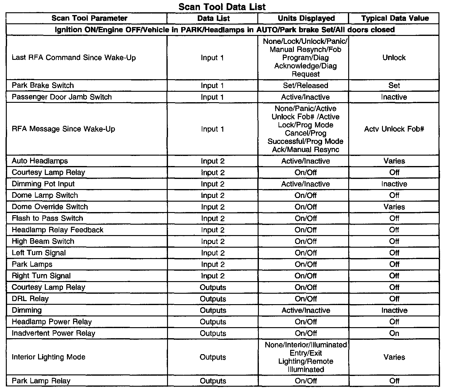 Scan Tool Data List Part 1:
