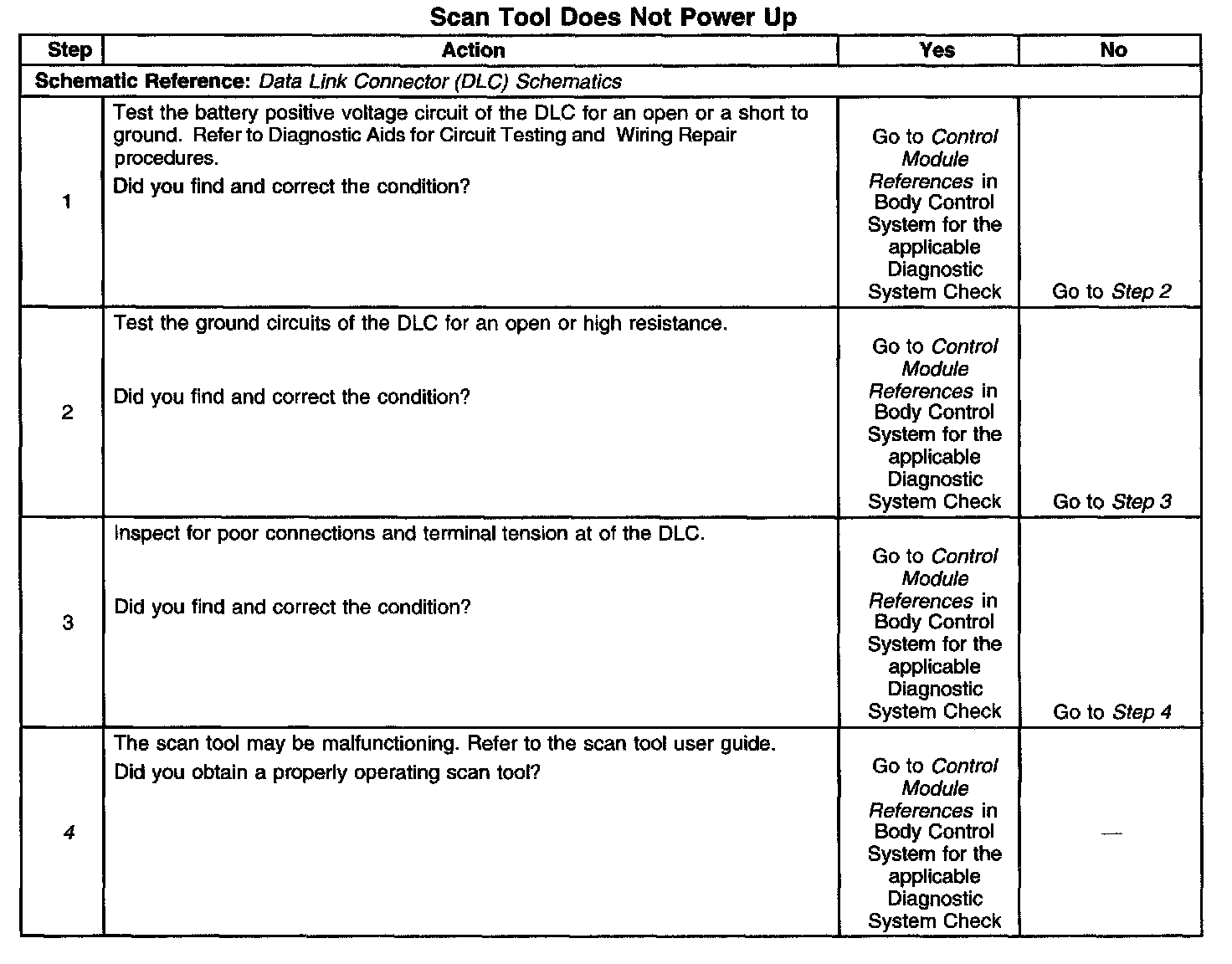 4. If the battery positive voltage and ground circuits of the DLC are functioning properly. The malfunction must be due to the scan tool.