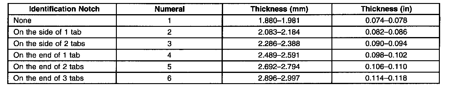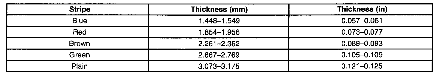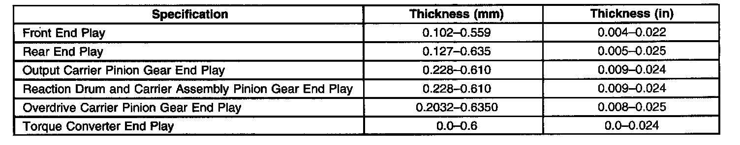 Output Shaft Selective Thrust Washer Specifications