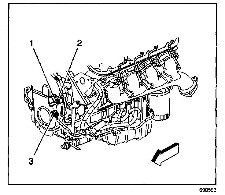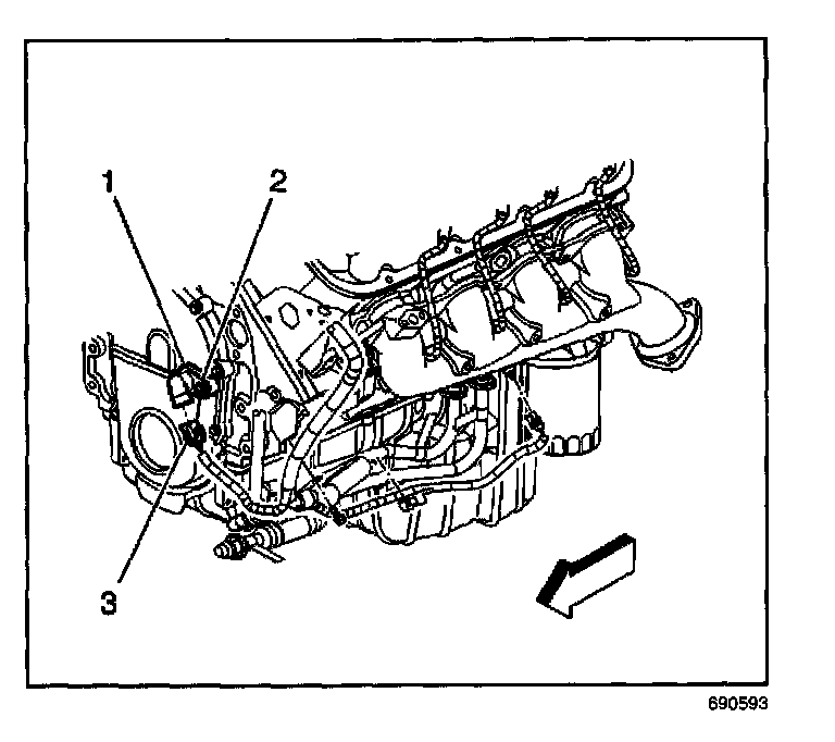 3. Remove the CMP sensor retaining bolt (2).