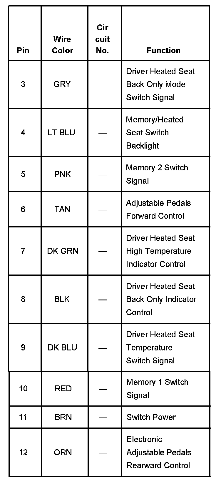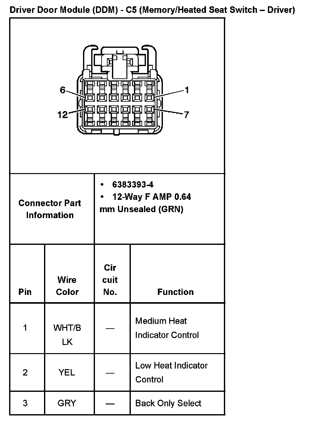Driver Door Module (DDM) - C5 (Memory/Heated Seat Switch - Driver) Part 2: