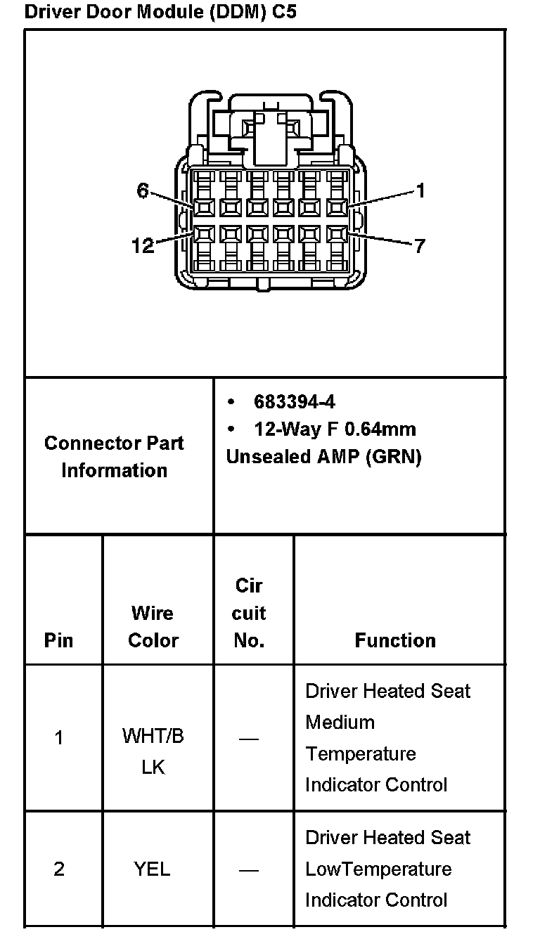 Driver Door Module (DDM) - C5 (Memory/Heated Seat Switch - Driver) Part 1: