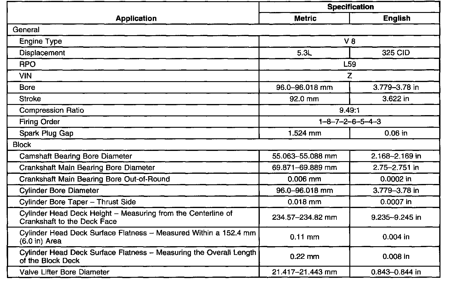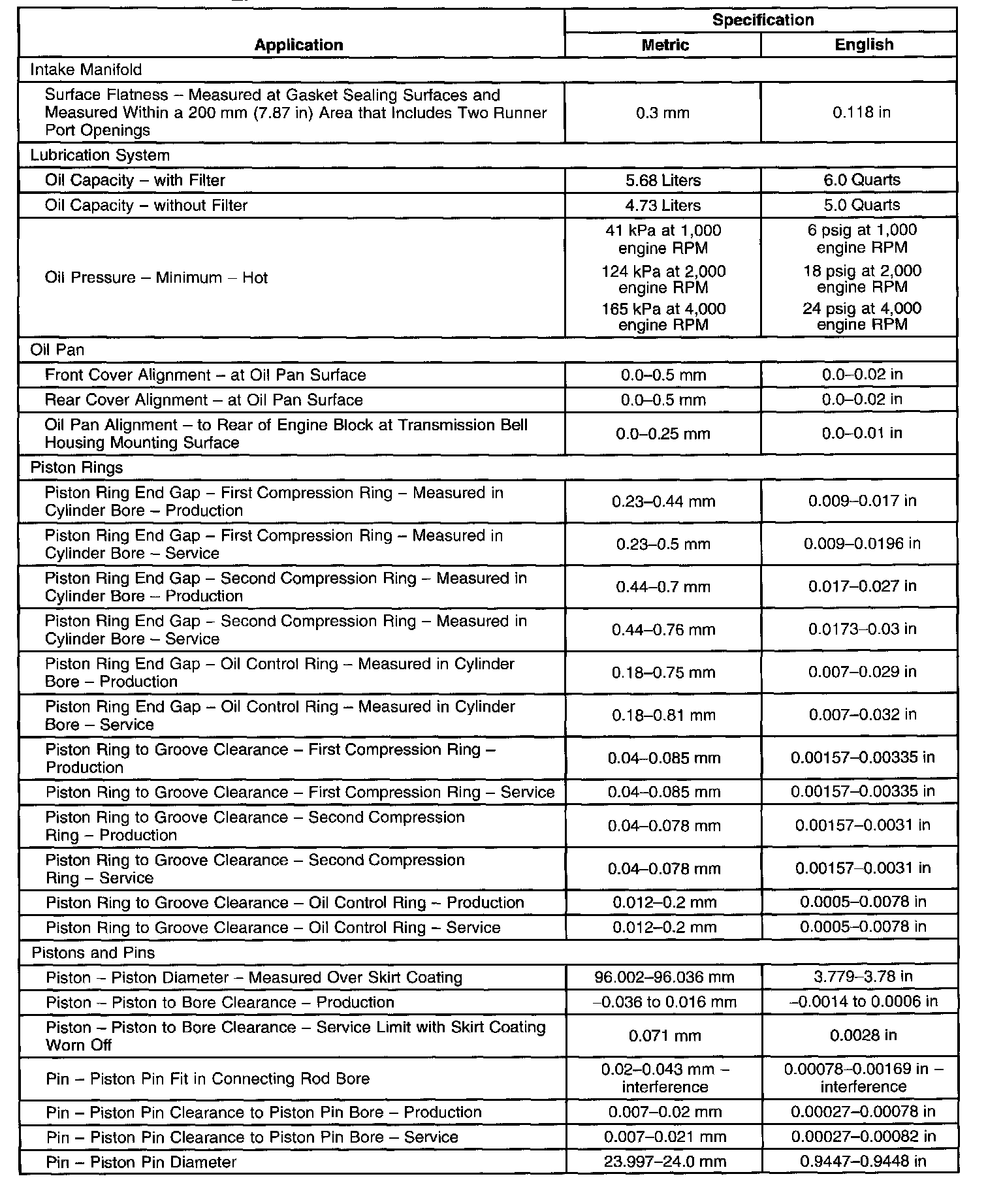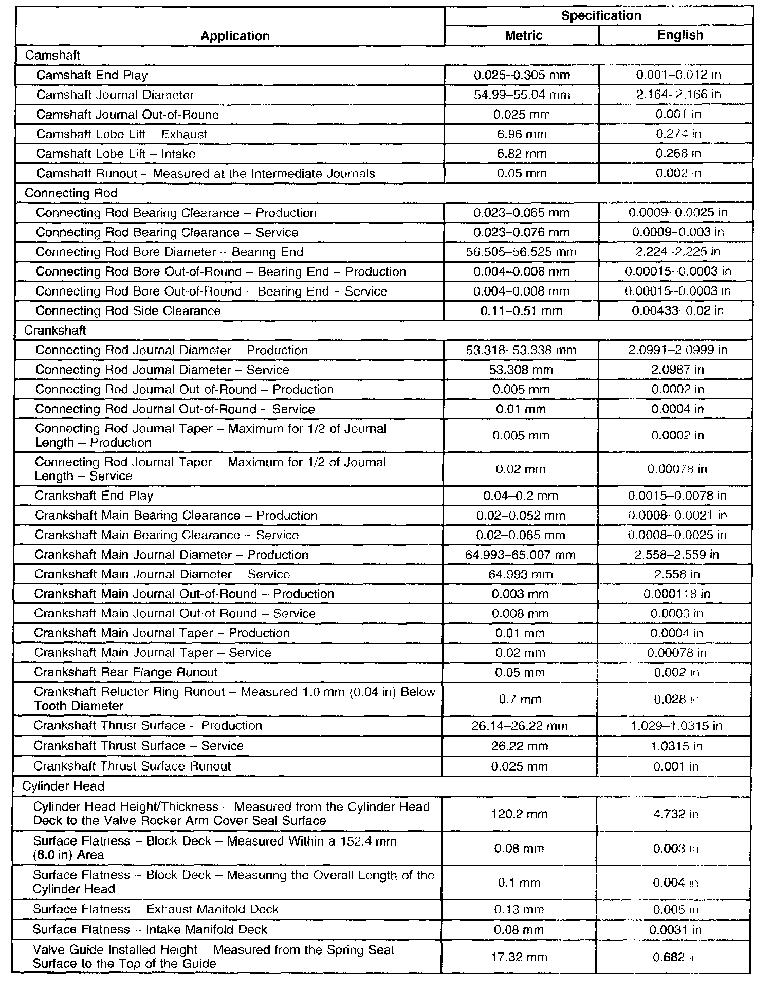 Engine Mechanical Specifications