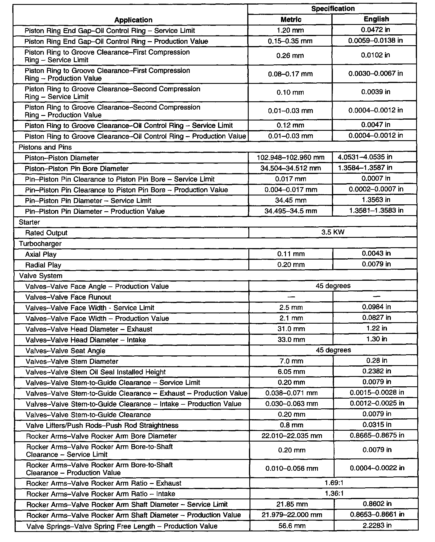 Engine Mechanical Specifications 4 Of 4: