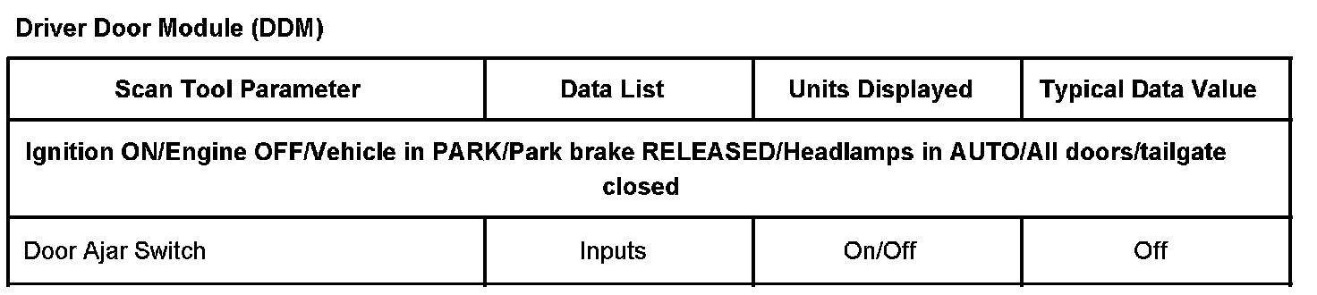 Scan Tool Data List - Driver Control Module (DDM)