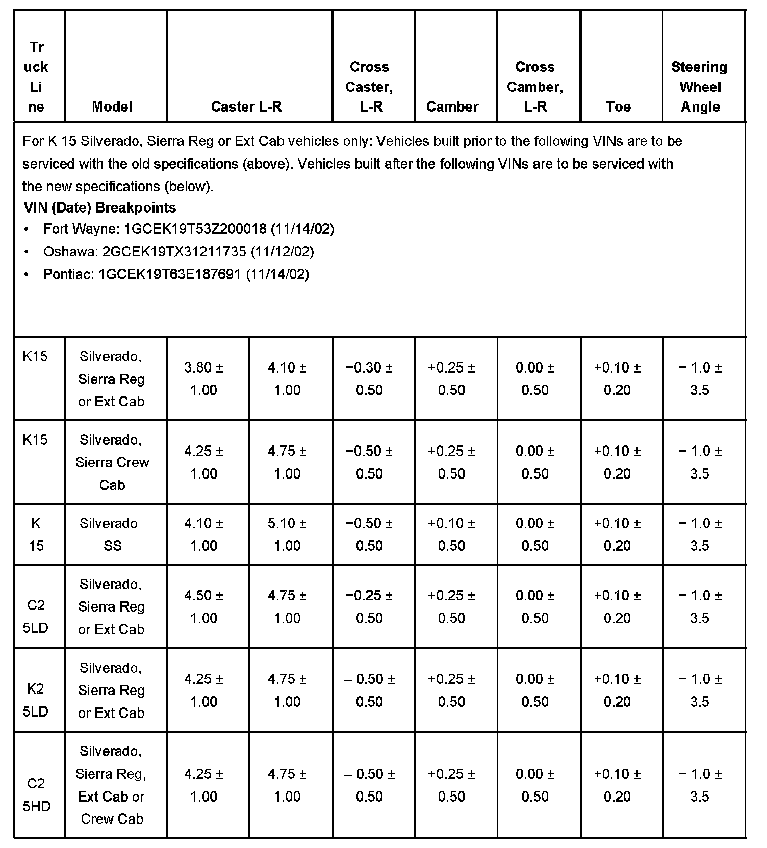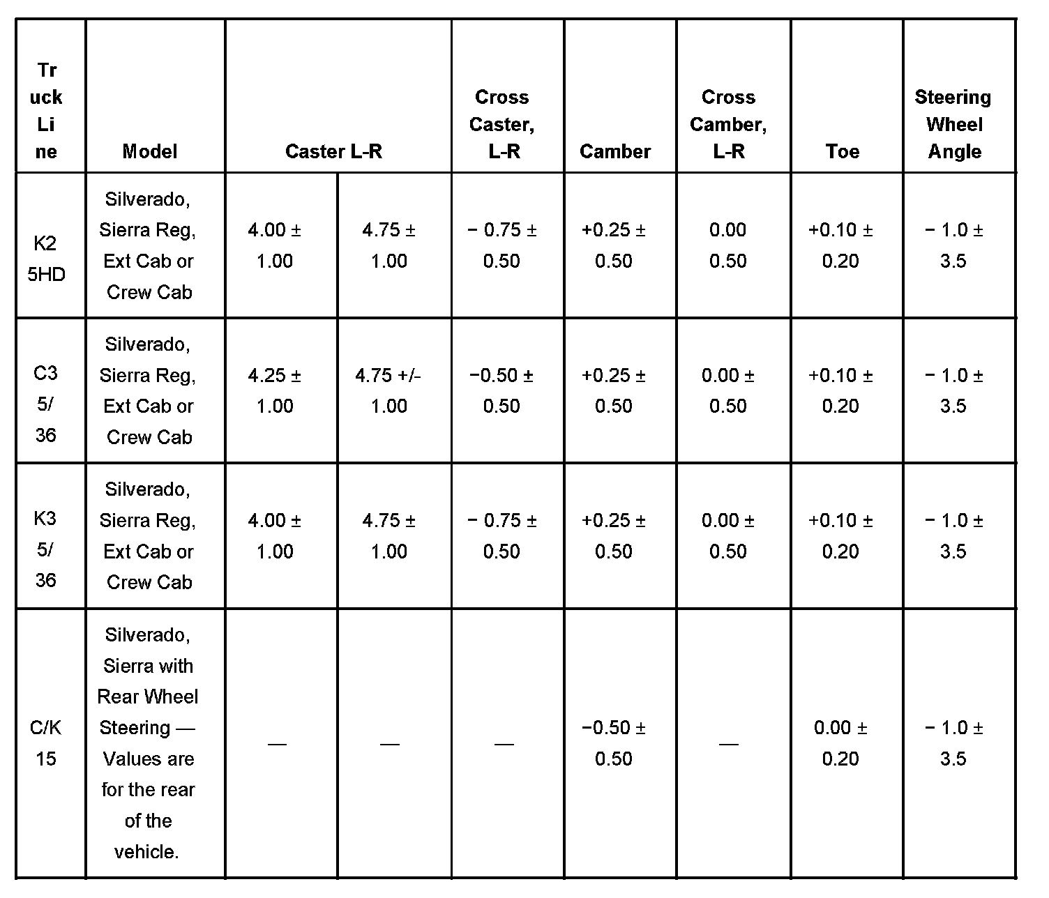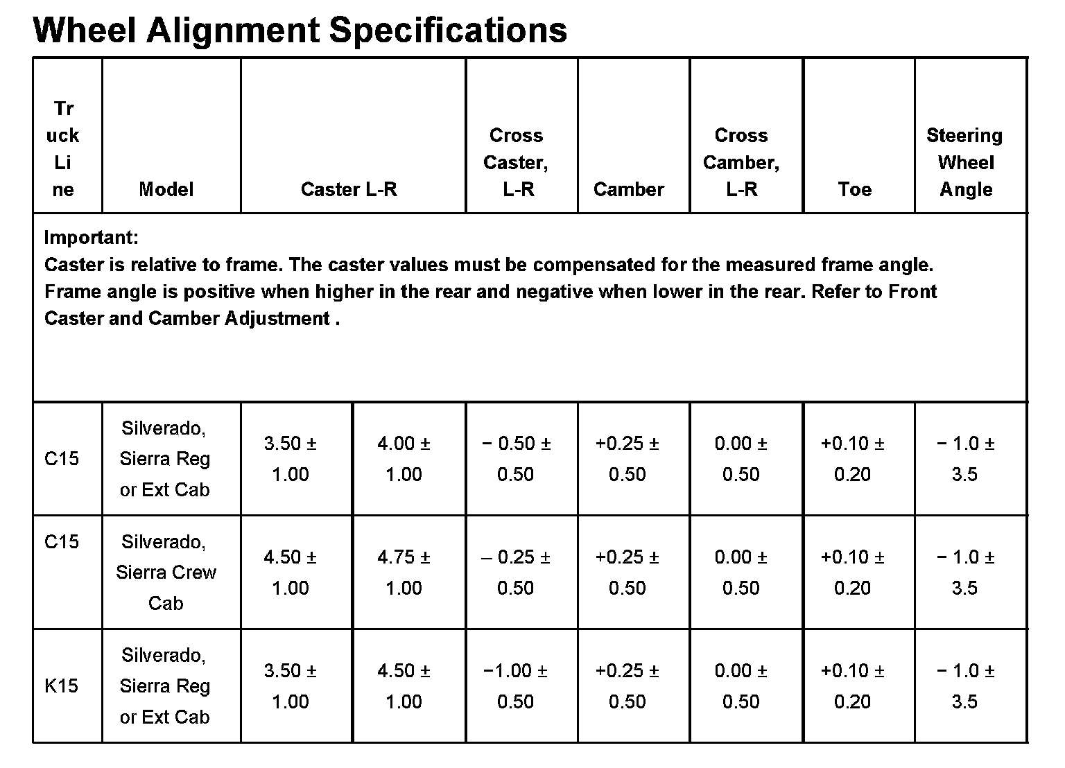 Wheel Alignment Specifications