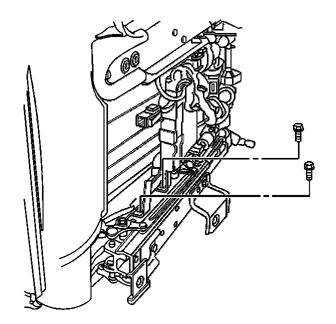 2. Install the memory seat module and bracket to the seat adjuster frame assembly with 2 screws.