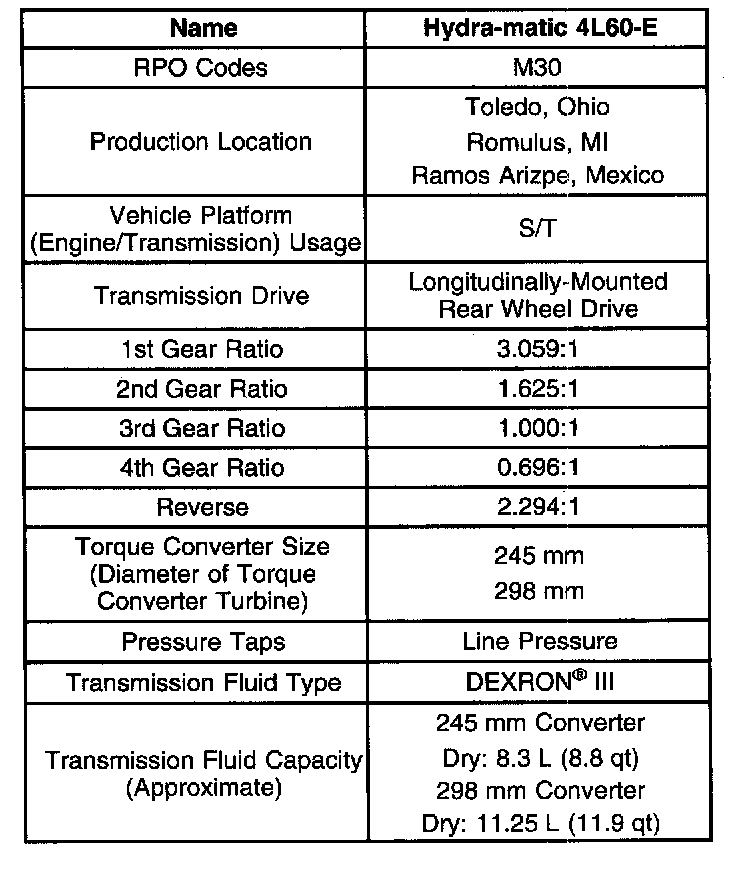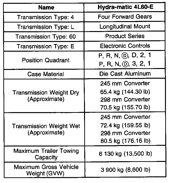 Transmission General Specifications
