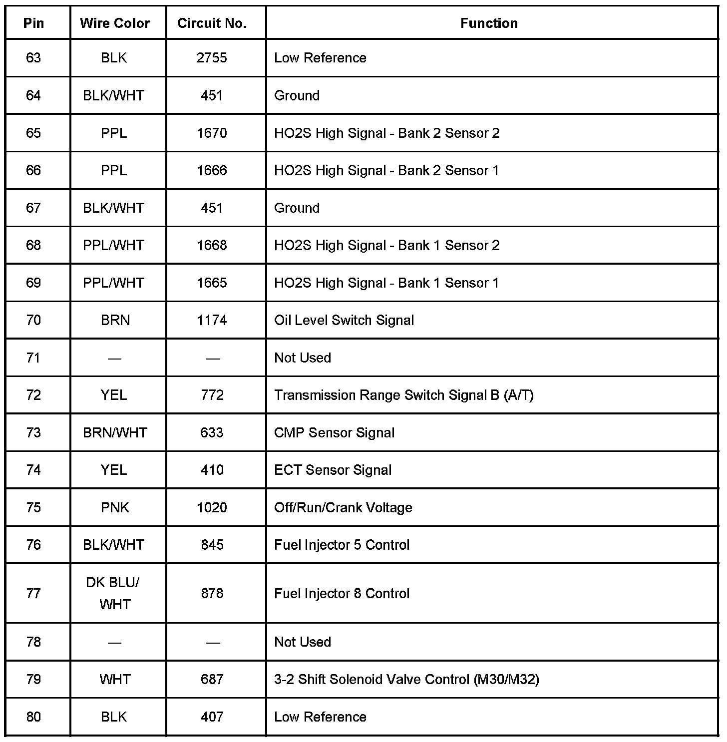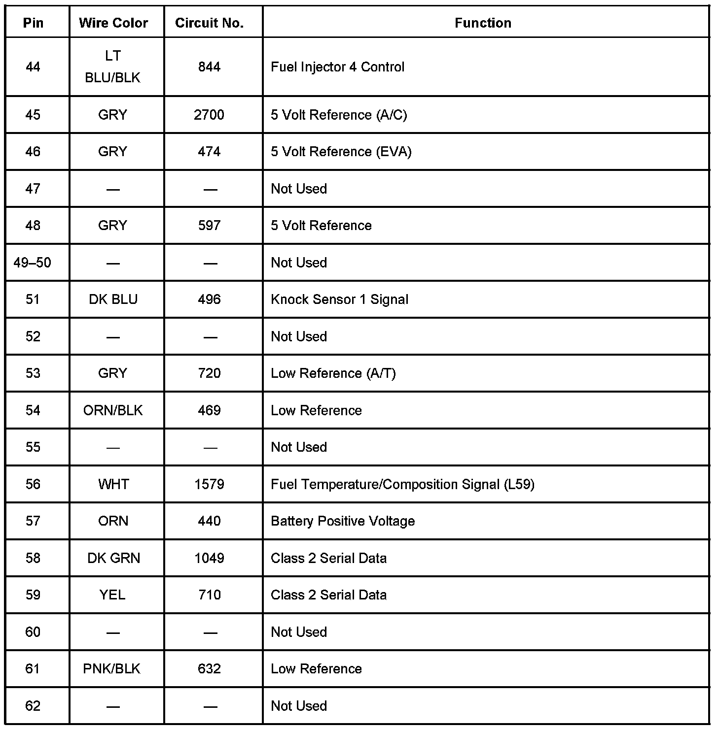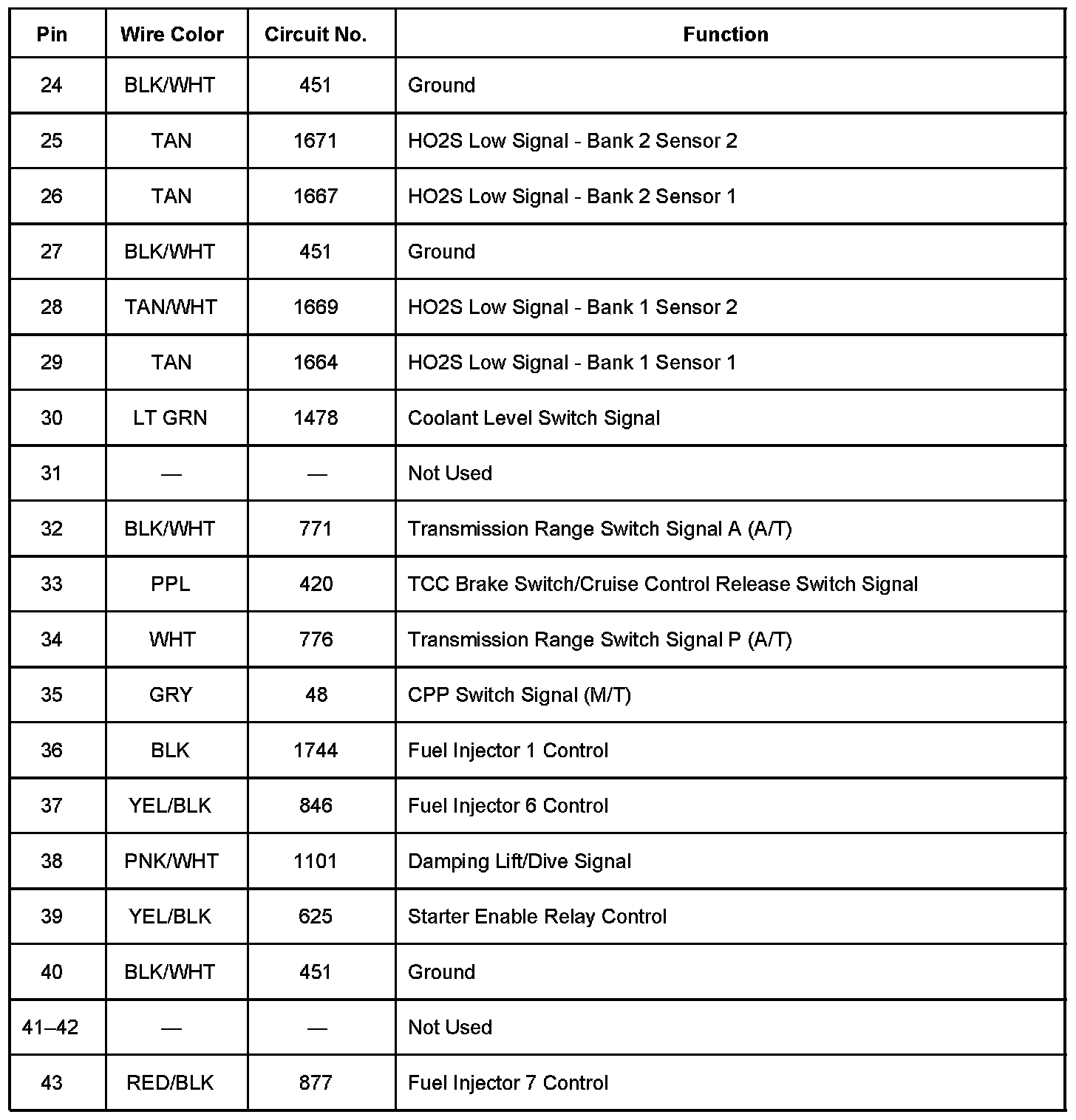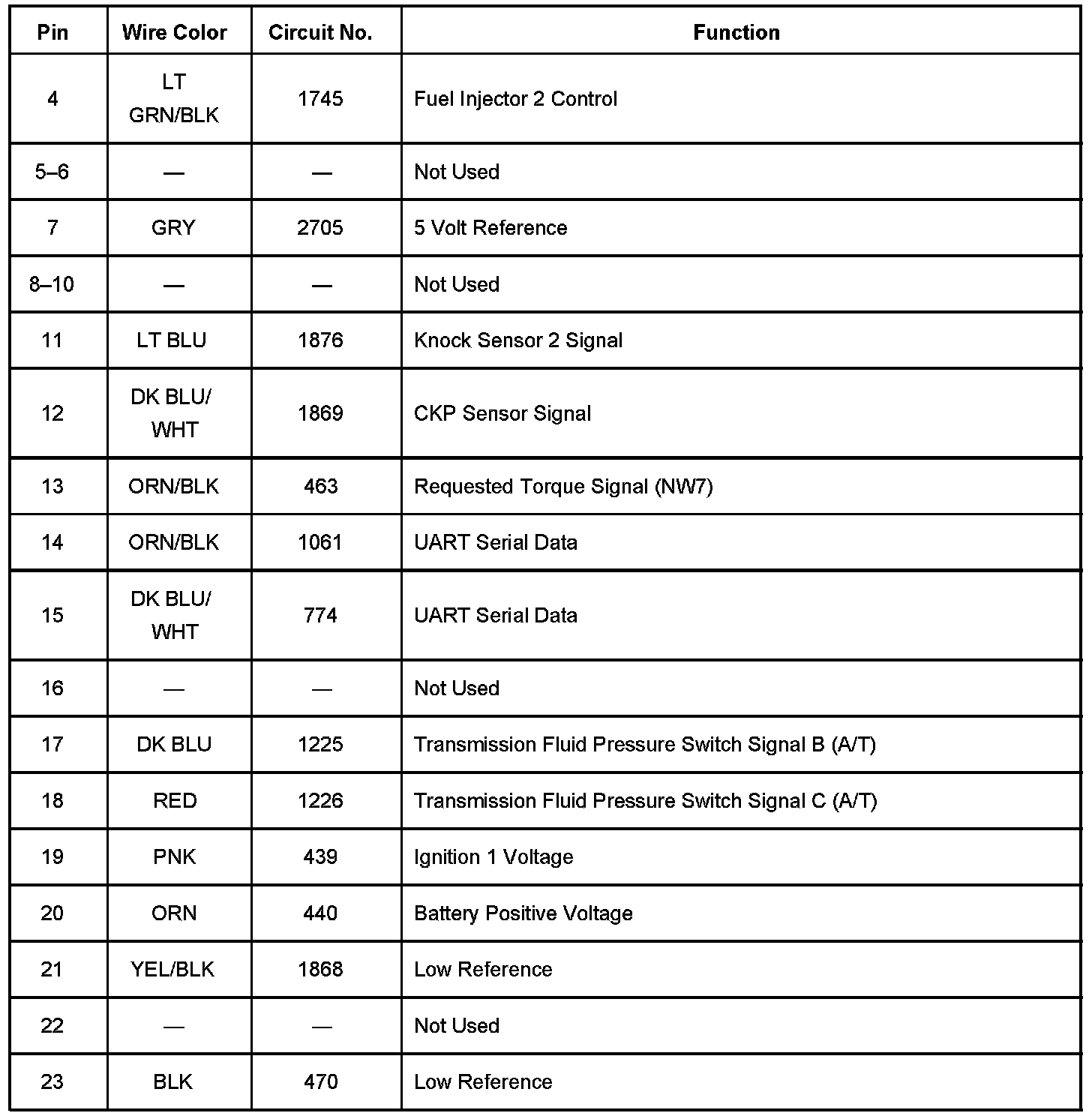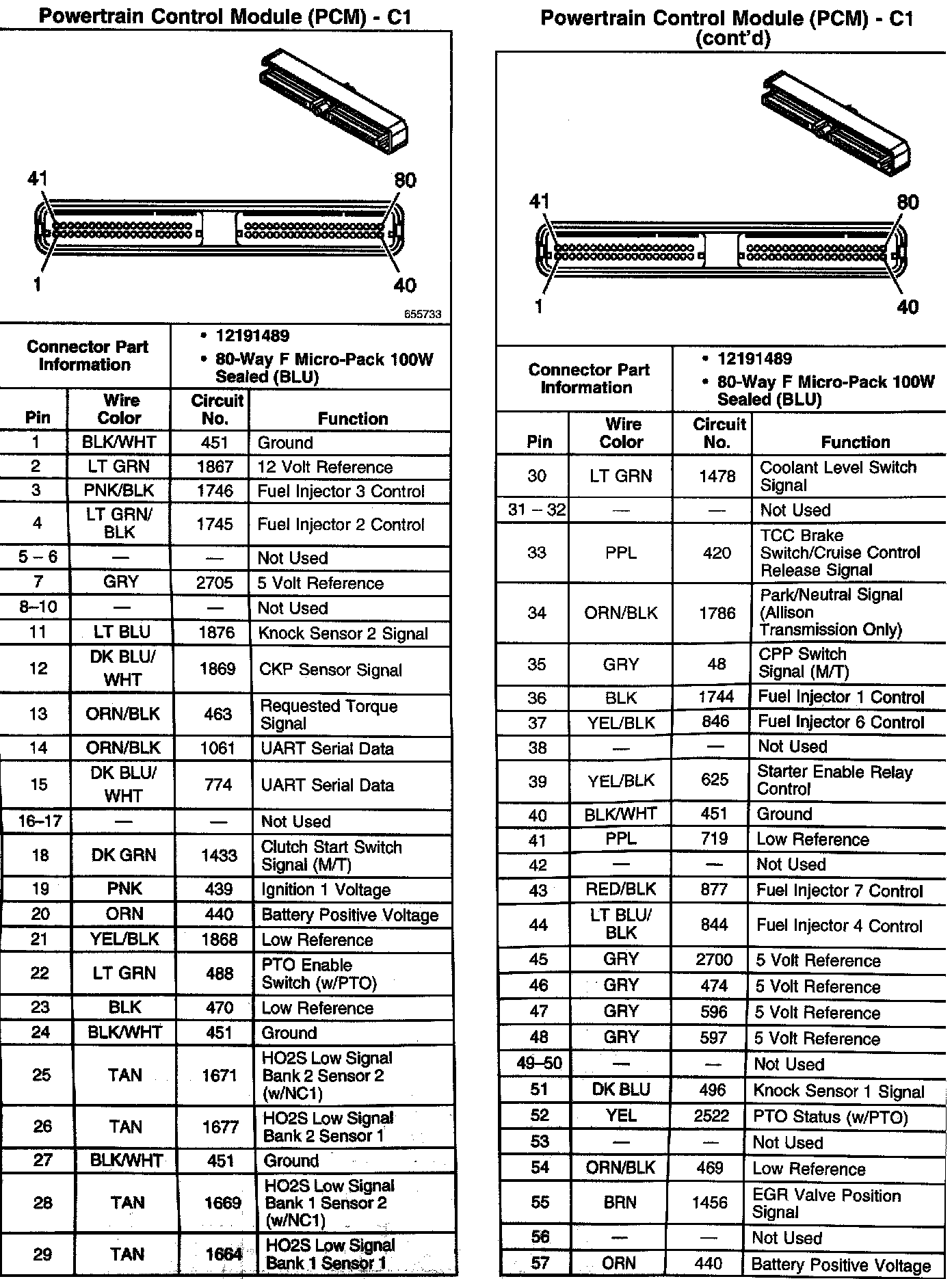Powertrain Control Module (PCM) - C1 Pins 1 - 57: