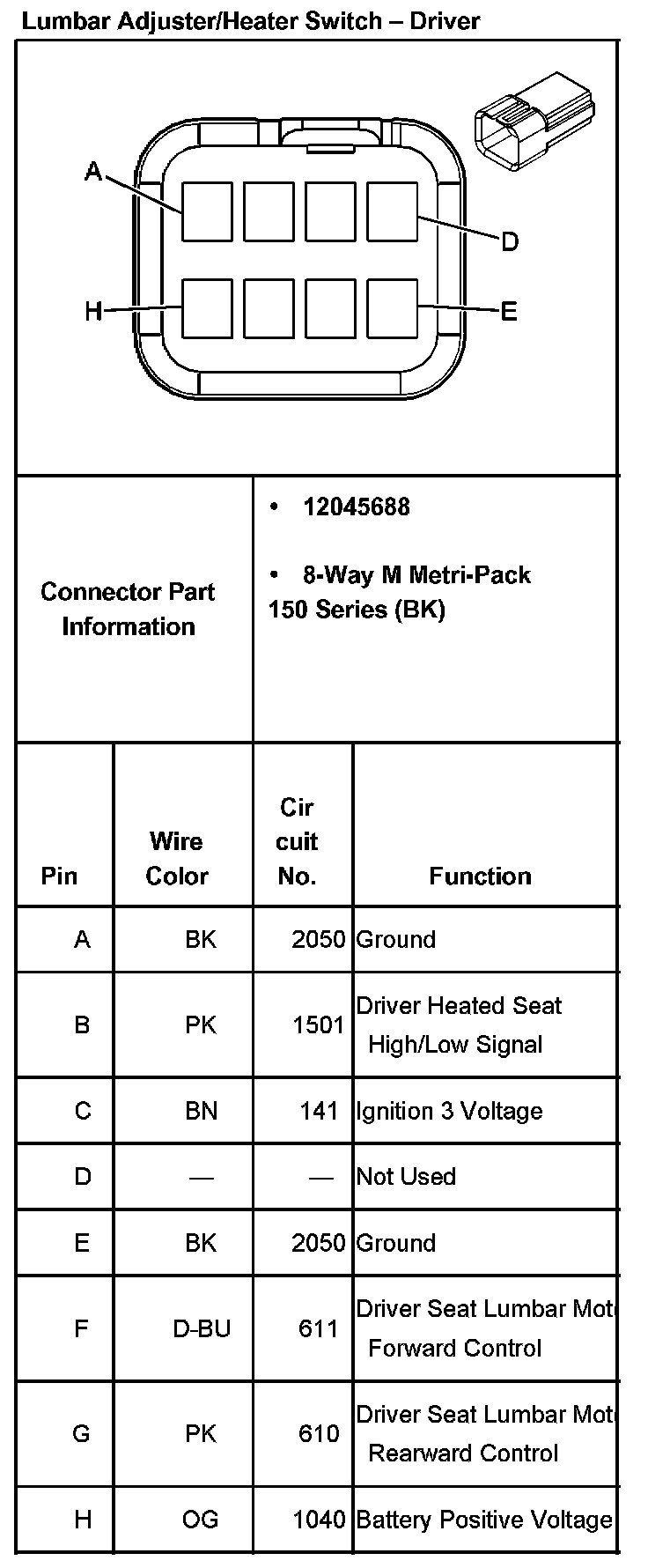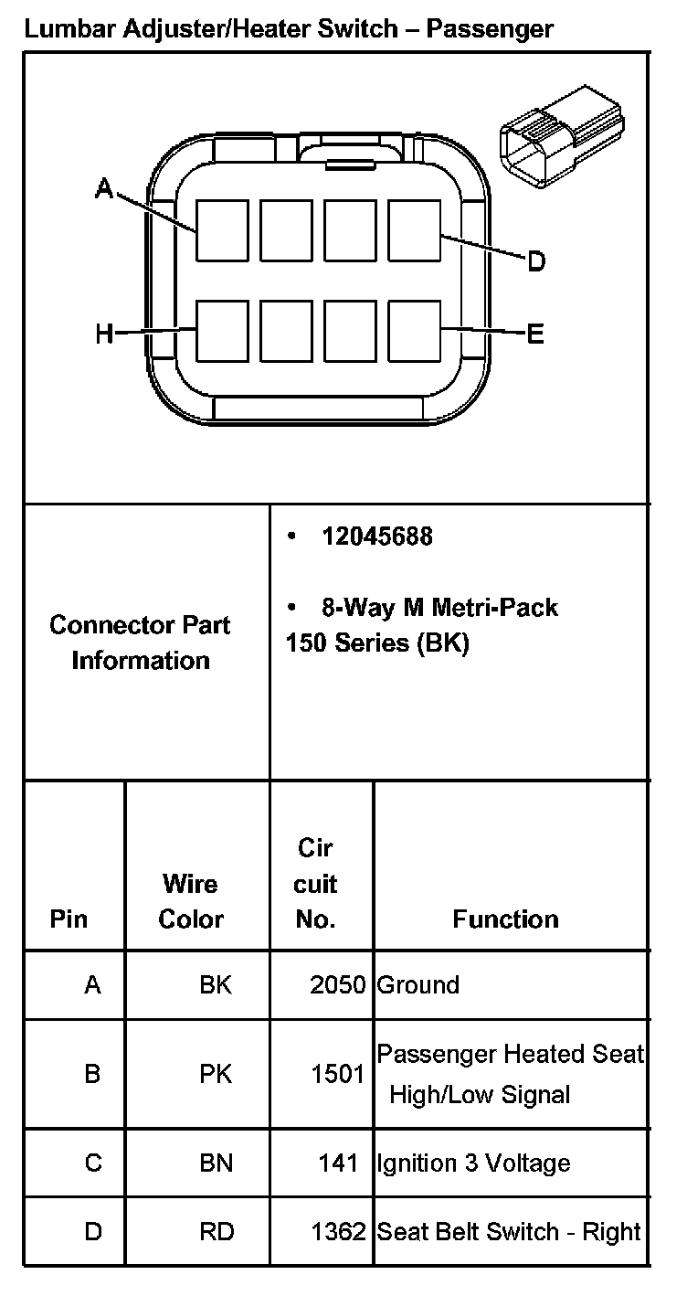 Lumbar Adjuster/Heater Switch - Passenger Part 2: